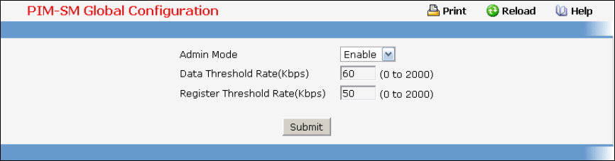 PIMSM Admin Mode - The administrative status of PIM-SM in the router: either enable or disable.