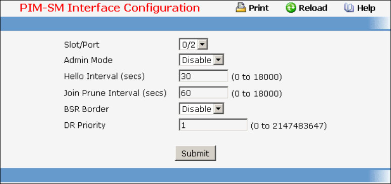 11.9.3.4 Configuring Interface’s PIM-SM Configuration Page