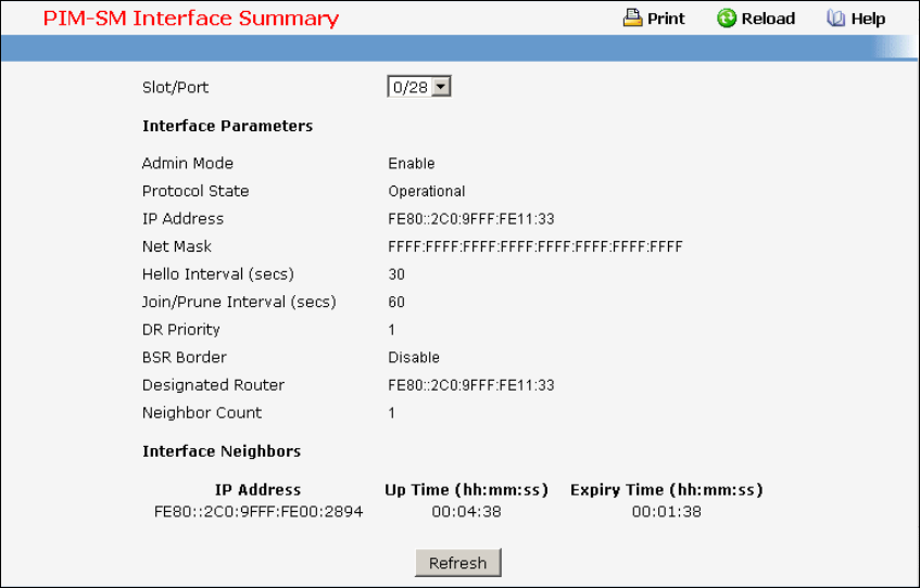 11.9.3.5 Viewing Interface’s PIM-SM Summary Page