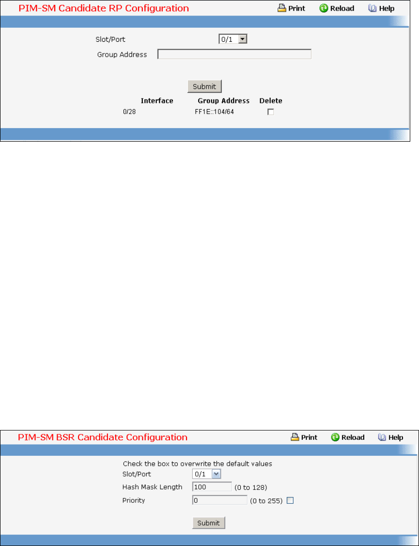 11.9.3.6 Configuring PIM-SM Candidate RP Configuration Page