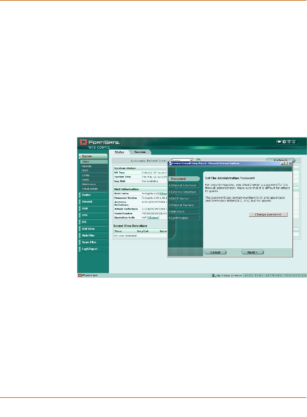 Connecting the FortiGate unit to the network(s) ............................................................... 36