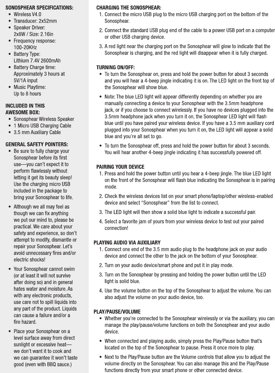 Fortyfour group SONO Bluetooth speaker User Manual user manual