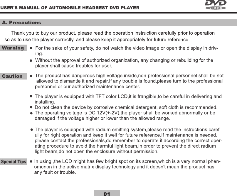 Forzen Technology HD901 Car DVD player User Manual 1