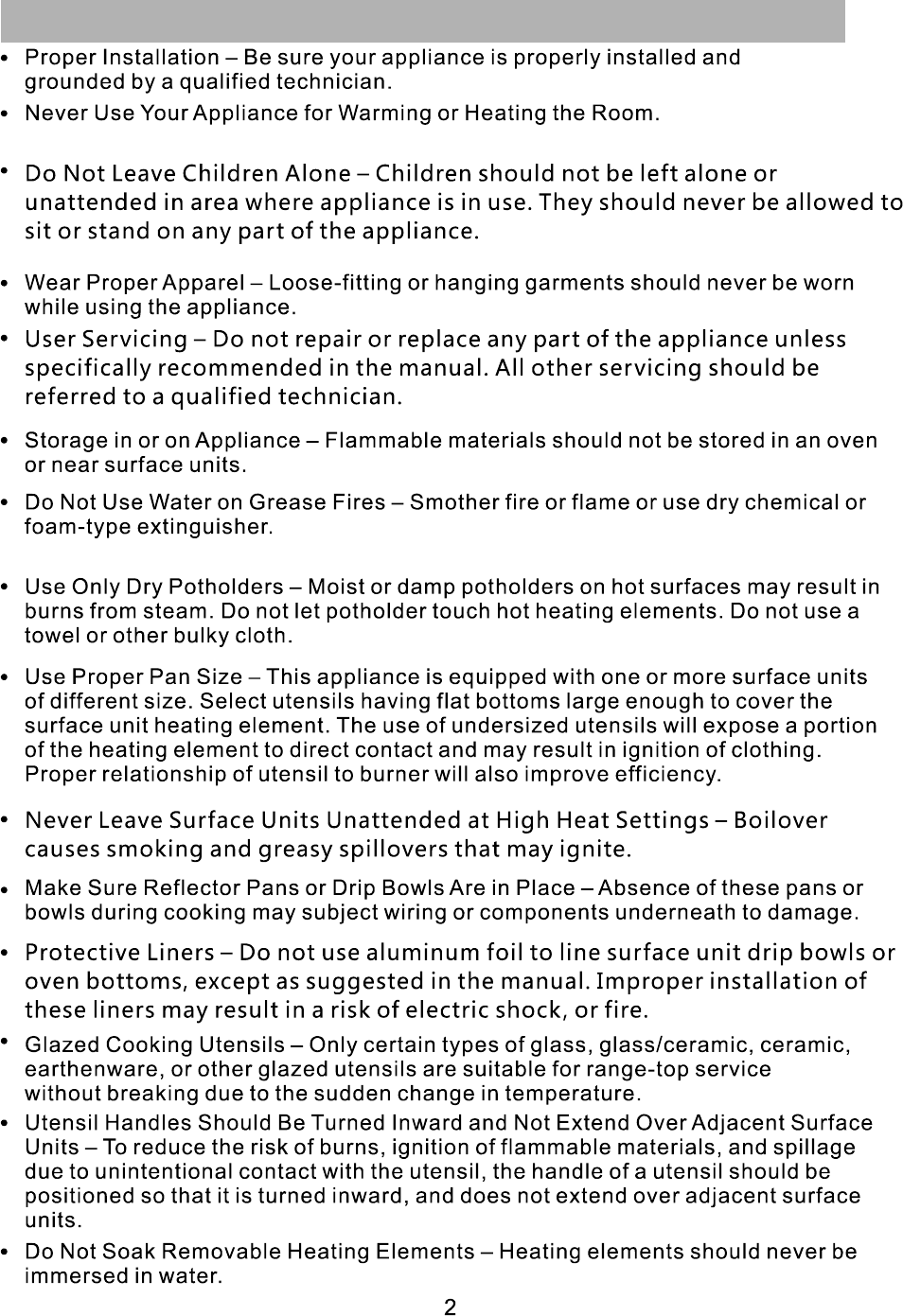 Never leave the cooktop unatended at High Heat setngs or when cooking oil or