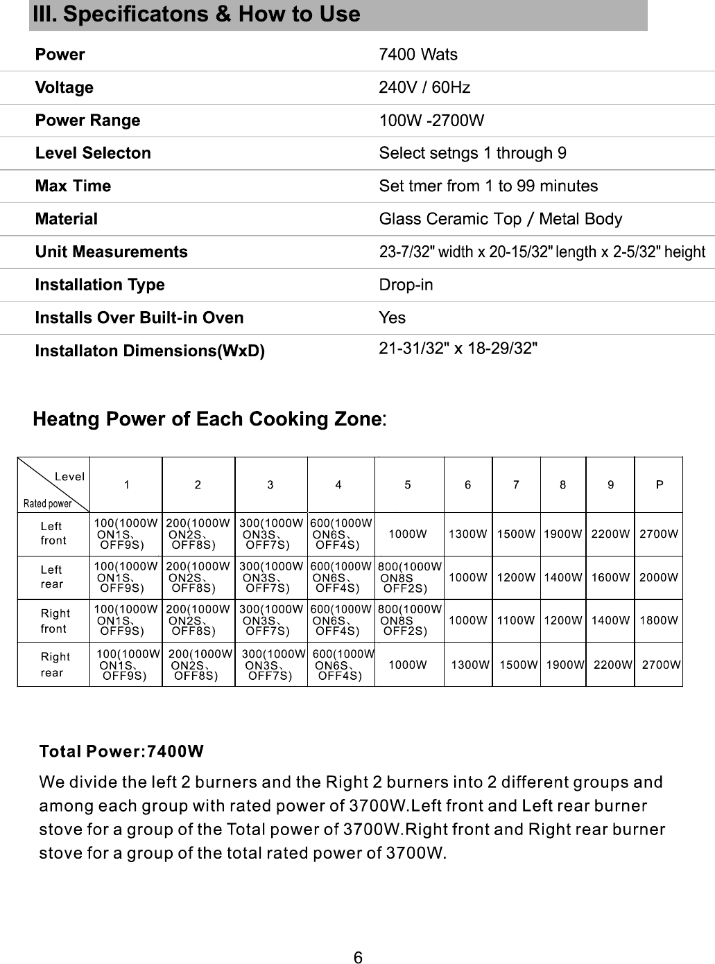 Do not cook on a broken or damaged cooktop as spillovers may penetrate surface