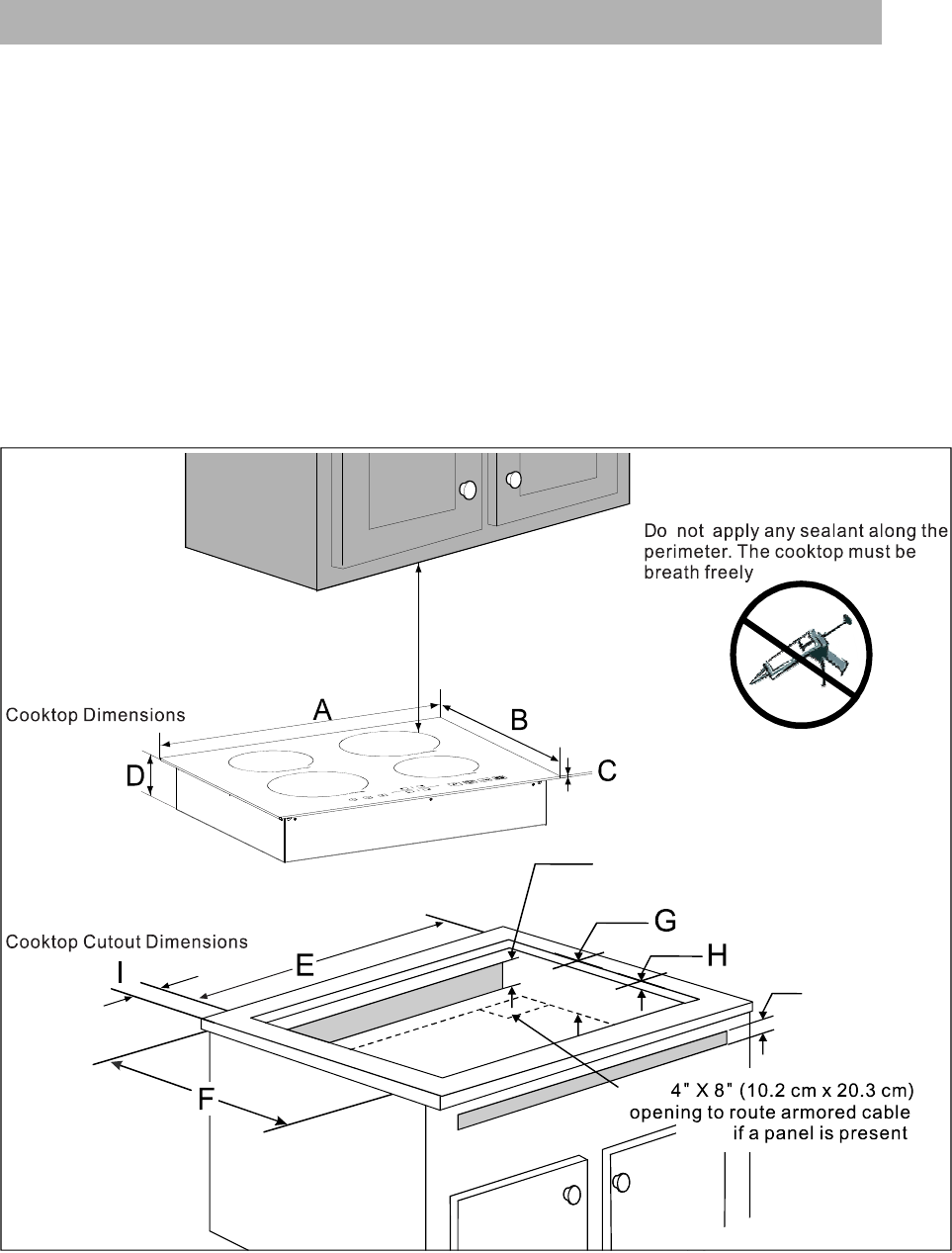 Do not place cooktop on or near:hot gas, electric burner, or heated oven.
