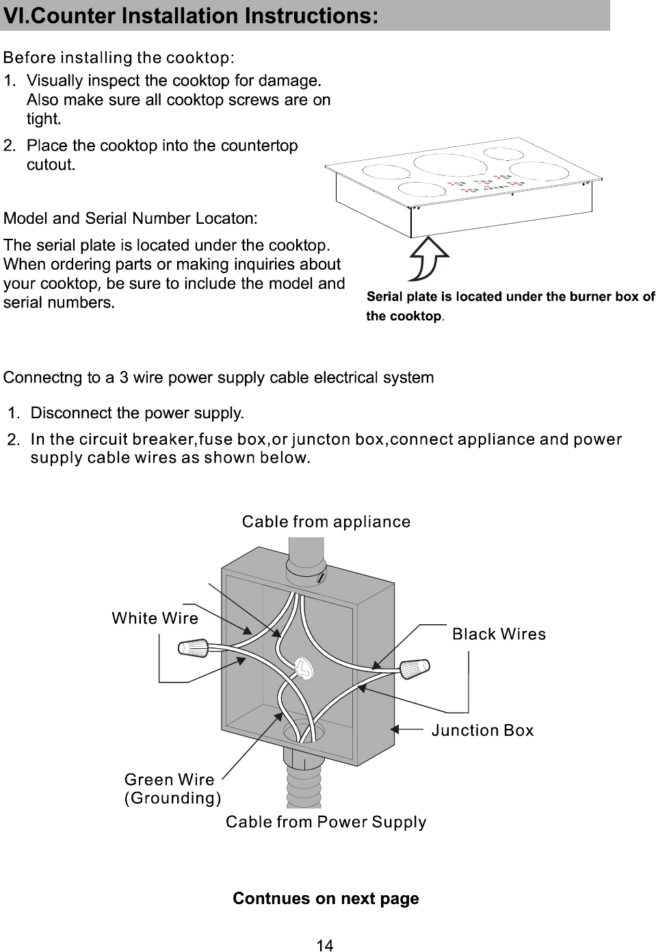 Do not place cooktop on or near:hot gas, electric burner, or heated oven.