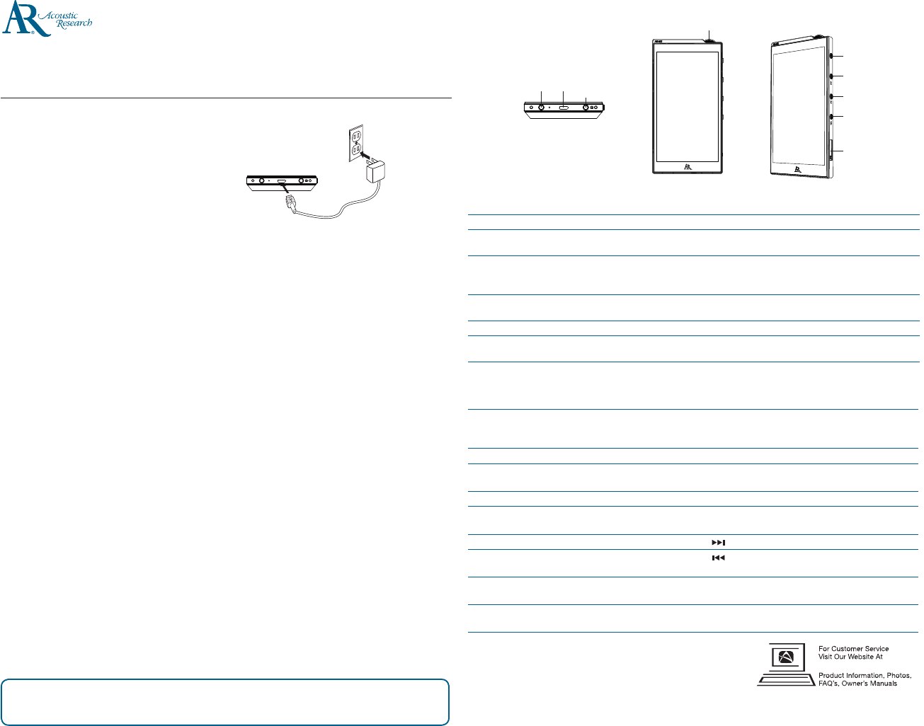 Congratulations on purchasing your new Acoustic Research High Resolution Music Player.