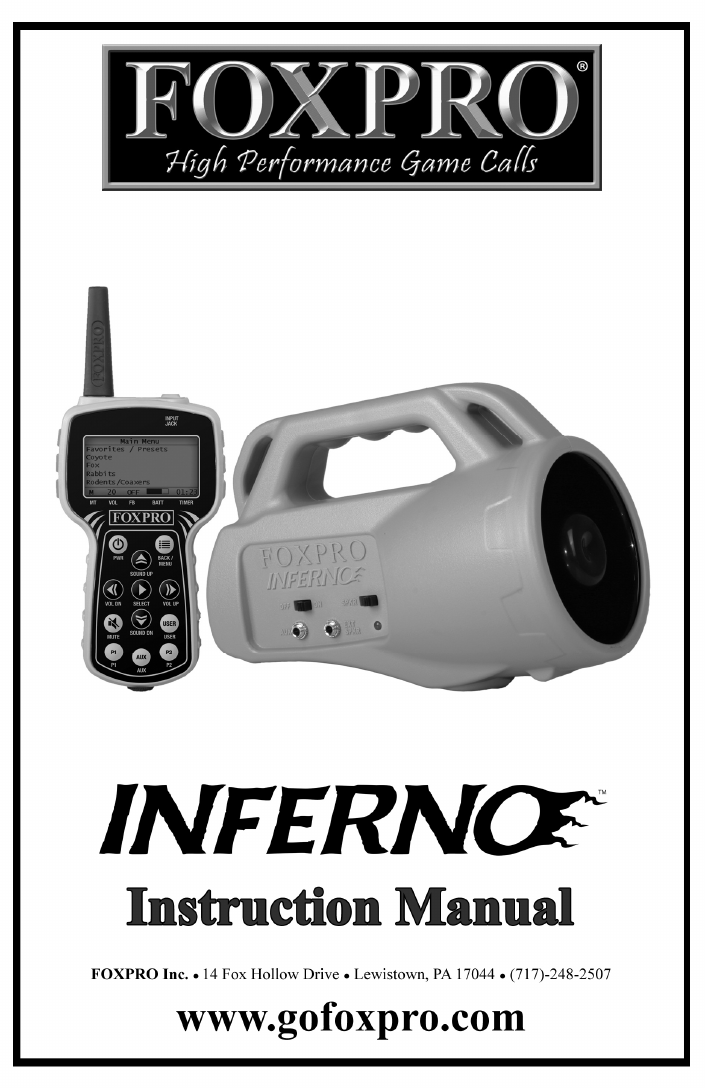 Congratulations on your purchase of the FOXPRO Inferno digital game call! To avoid personal injury and