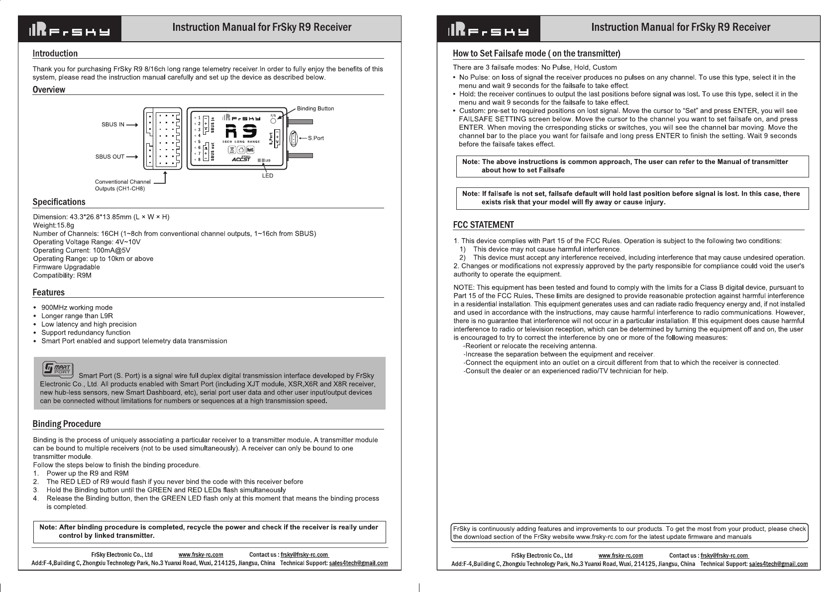 FrSky Electronic R9S09R 900MHz receiver User Manual XSR