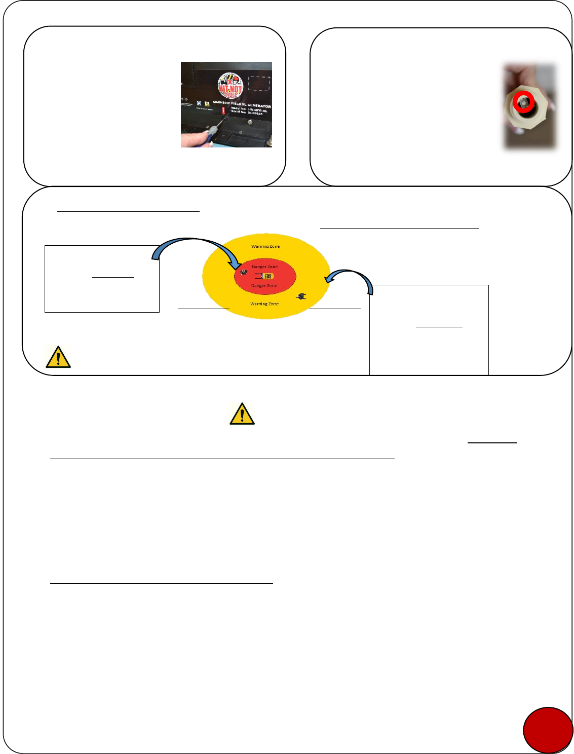 The HIT-NOT label defines the model and serial number of the Magnetic Field XL Generator