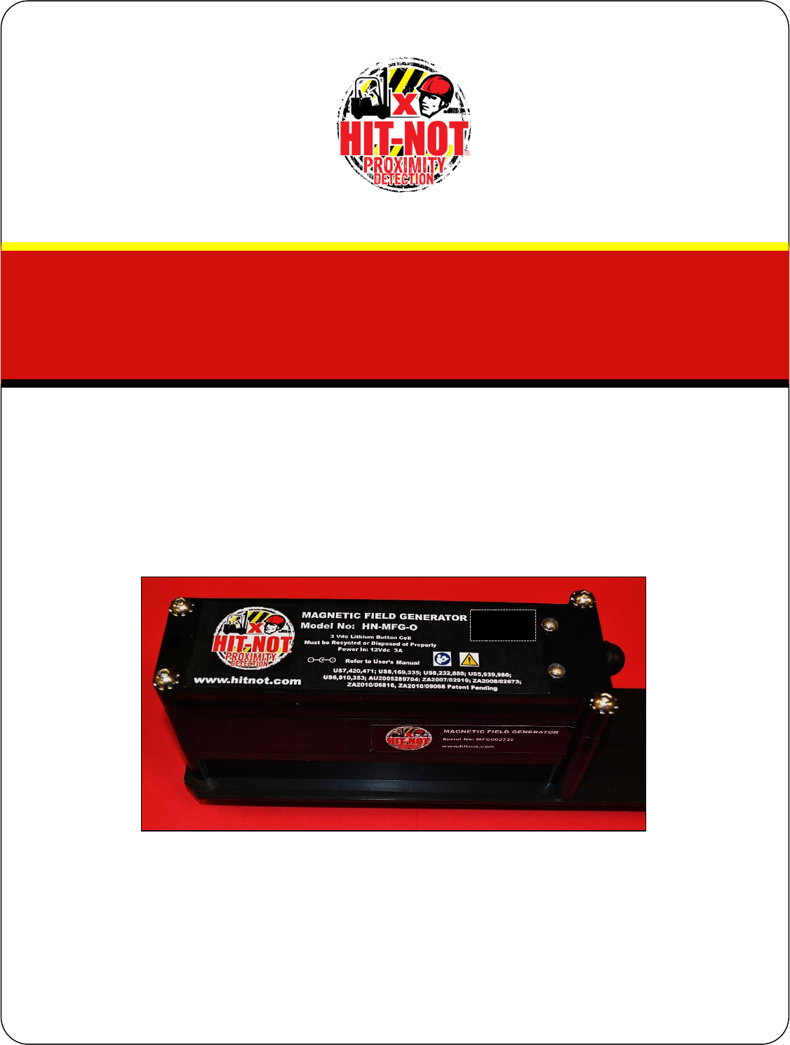 The HIT-NOT label defines the model and serial number of the Magnetic Field Generator.
