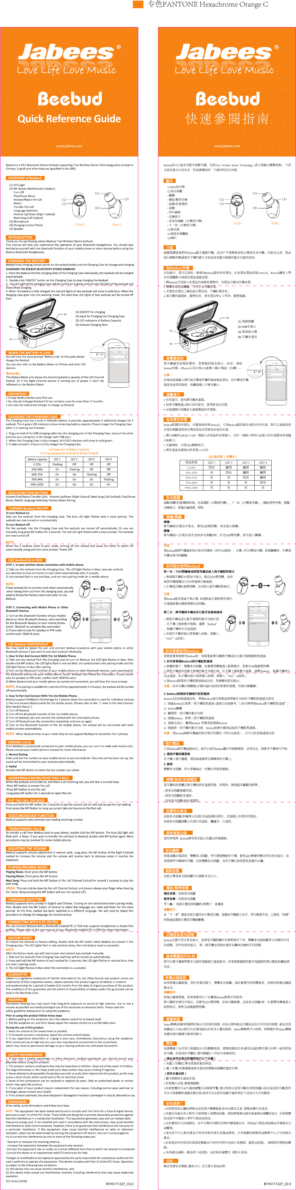 FreeTek 12018 True wireless bluetooth earbuds User Manual 12018 01 QRG V2 0 171227