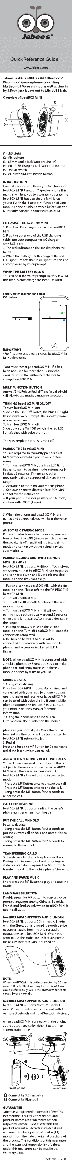 FreeTek 21010 Bluetooth Speaker User Manual 21010 QRG 150310