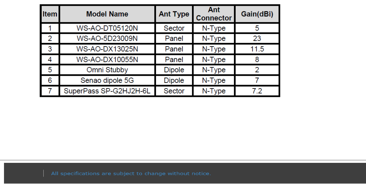 4. Authorized antennas per part 15.204 (including ant. spec.).