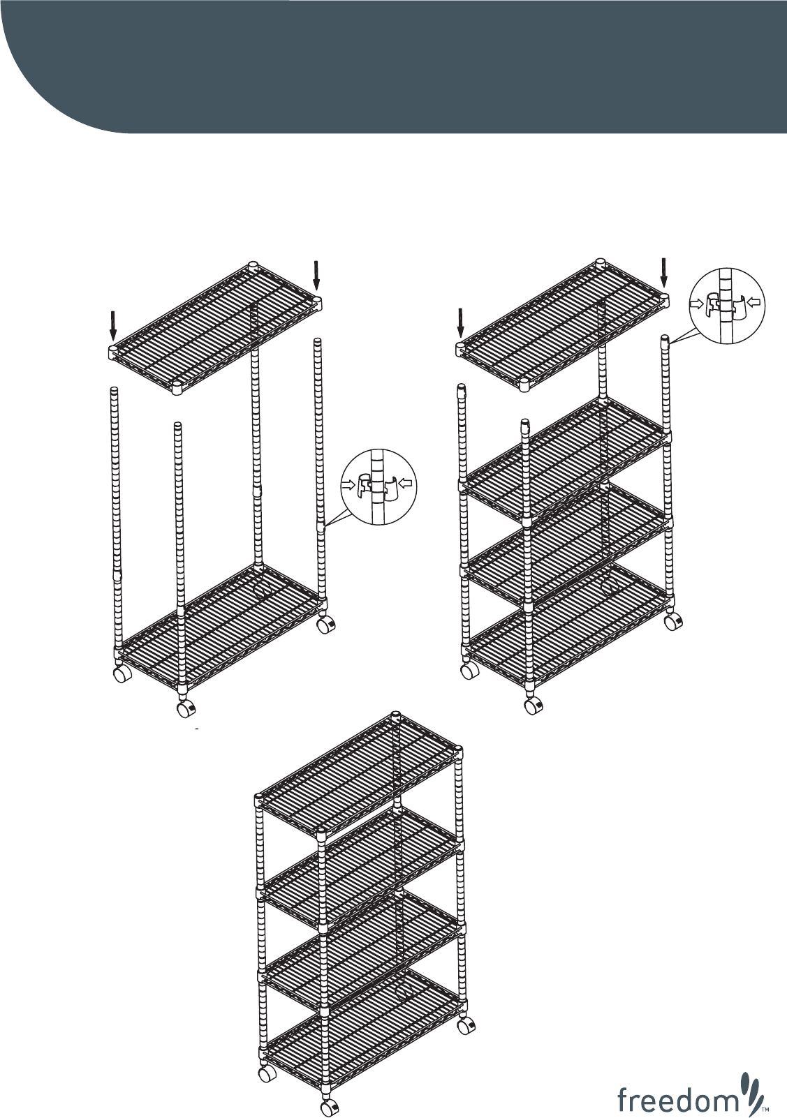 Freedom Flexi 4 Shelf Large Casterspdf Assembly Pg 1 NEW ARTWORK