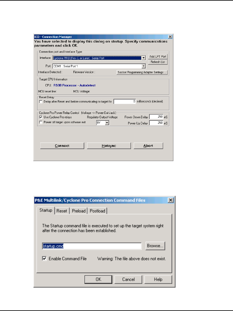 - HC08 P&E Multilink/Cyclone Pro Connection