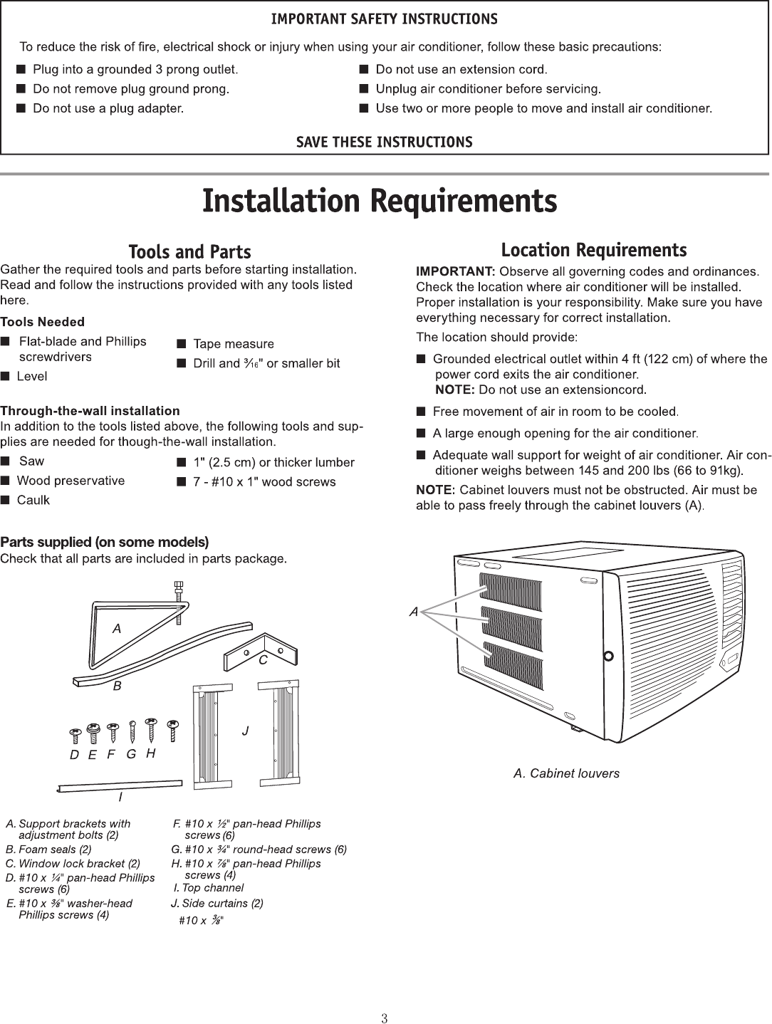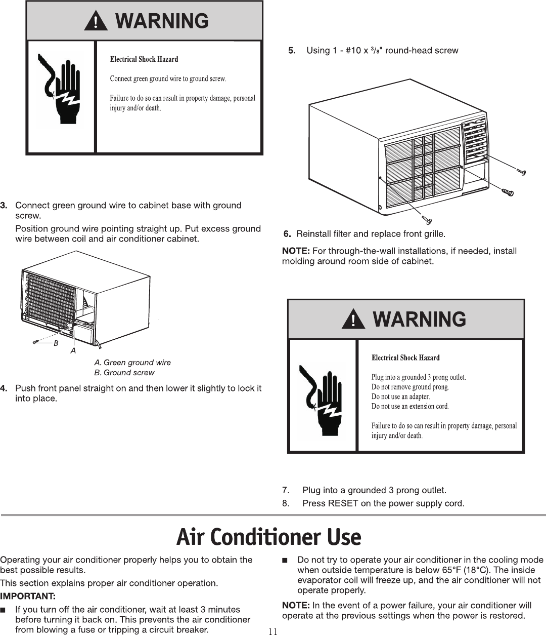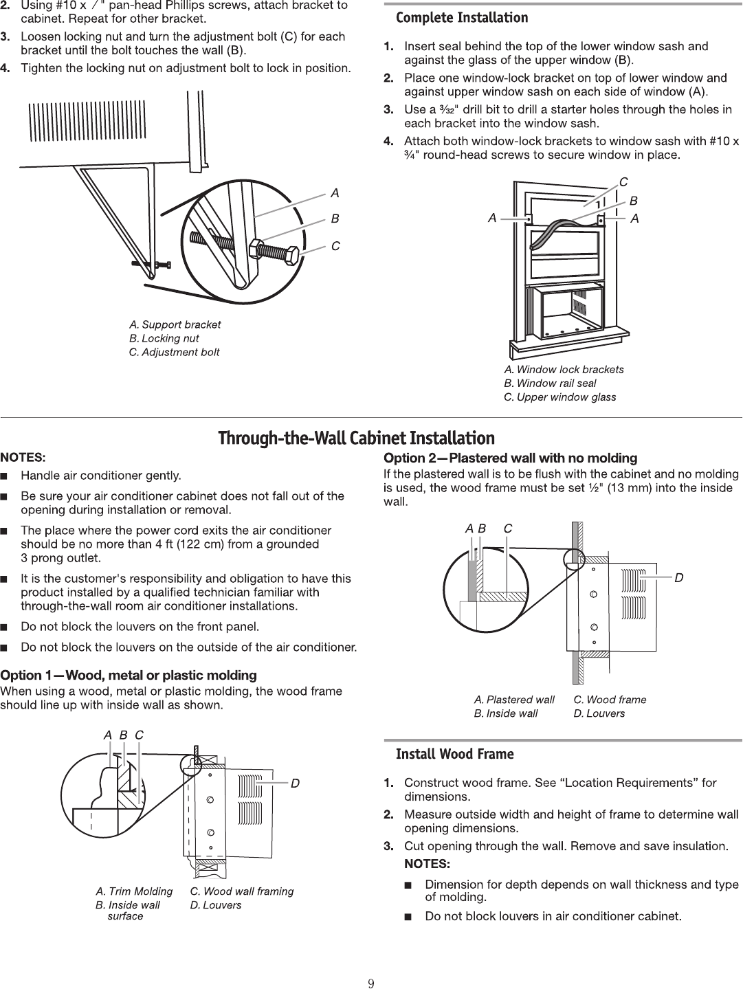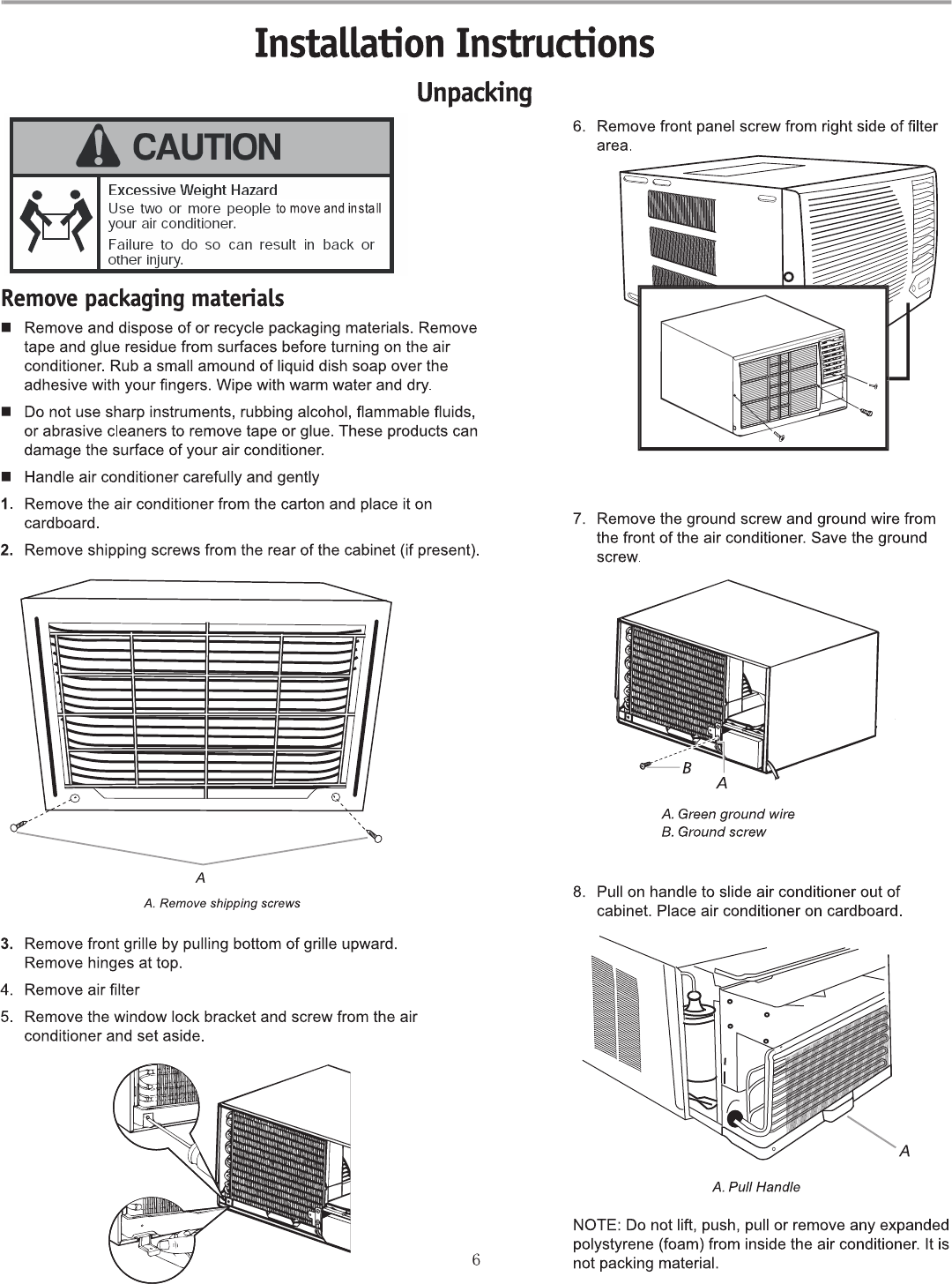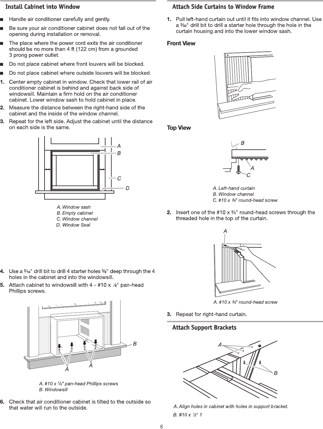 outside. Level the air conditioner to provide a downward