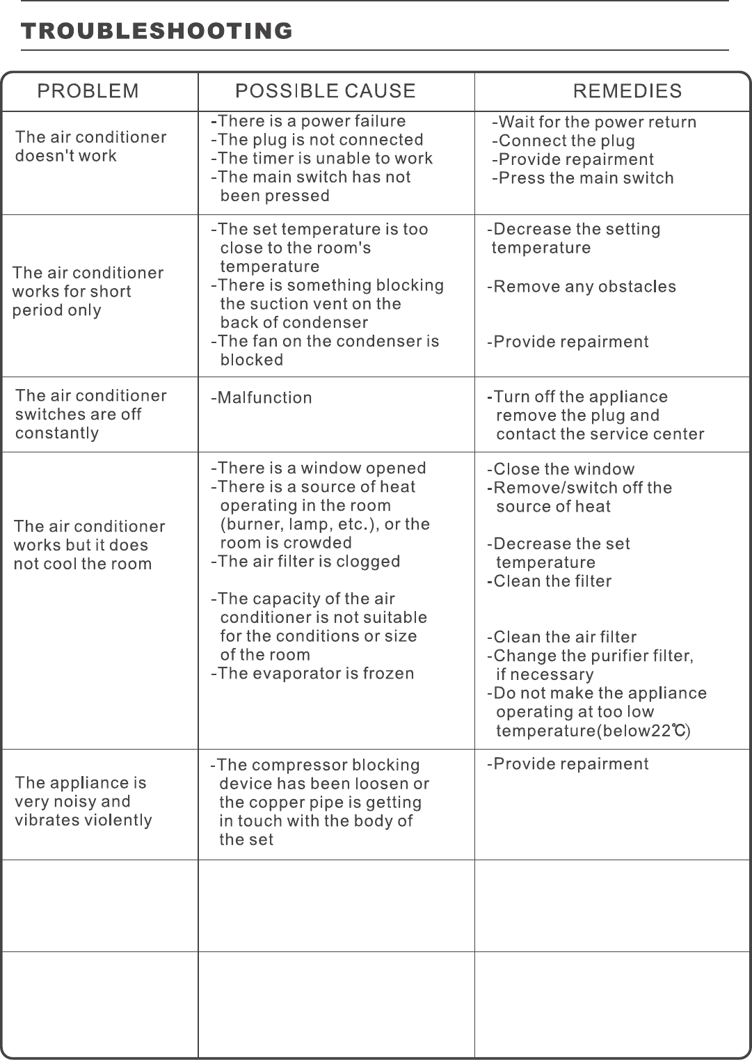 not pay ,,the cost of diagnosis of the problem removal freight ,charges and transportation of the air conditioner to and from the