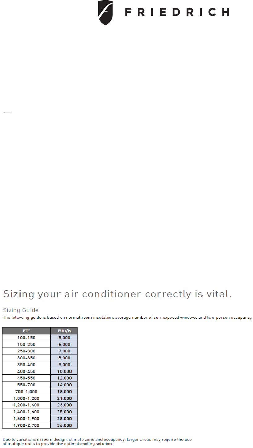 FRIEDRICH ROOM UNIT HEAT PUMPS
