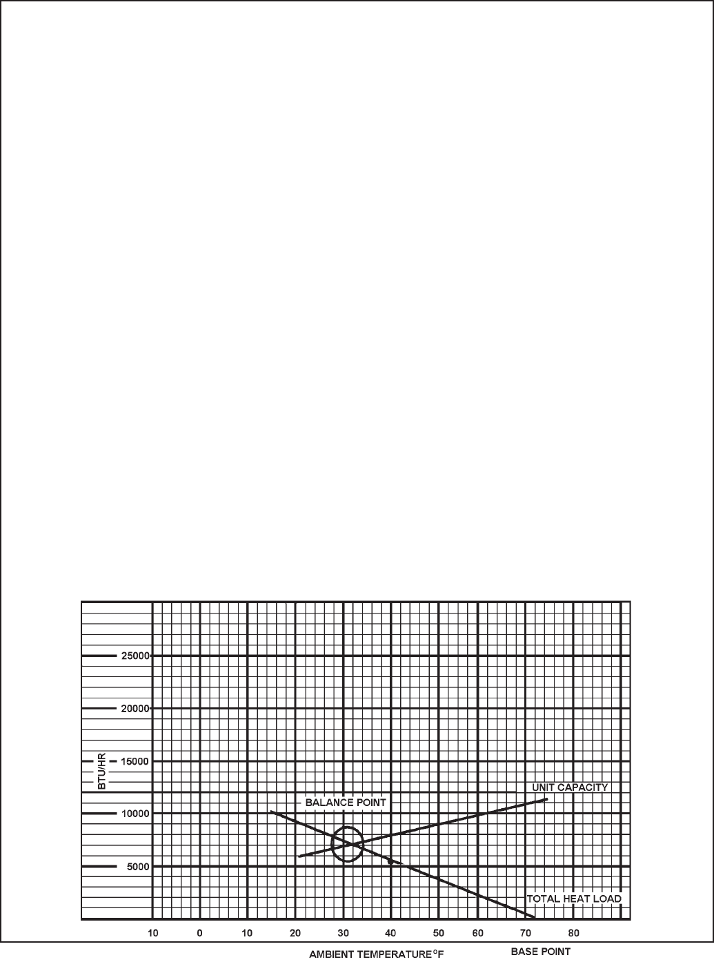 Multiply total BTU/HR/°F X 30 and plot on the graph below at 40°F. Draw a straight line from