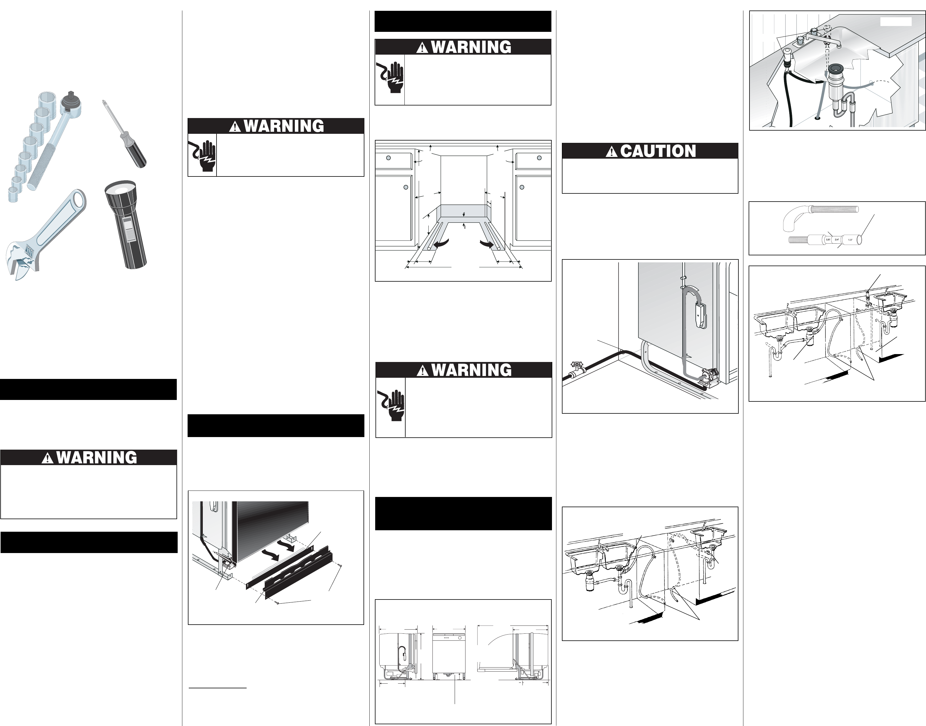 1. Review dimensions in Figure 3 to locate dishwasher’s drain,