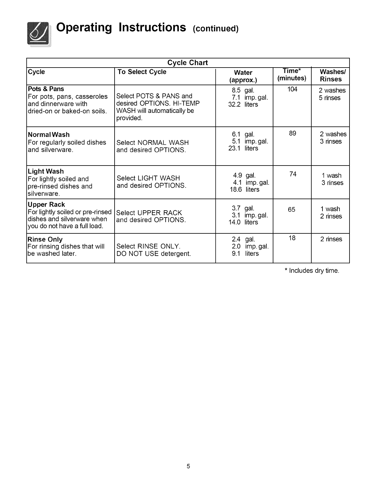 ° This dishwasher is designed to operate on
