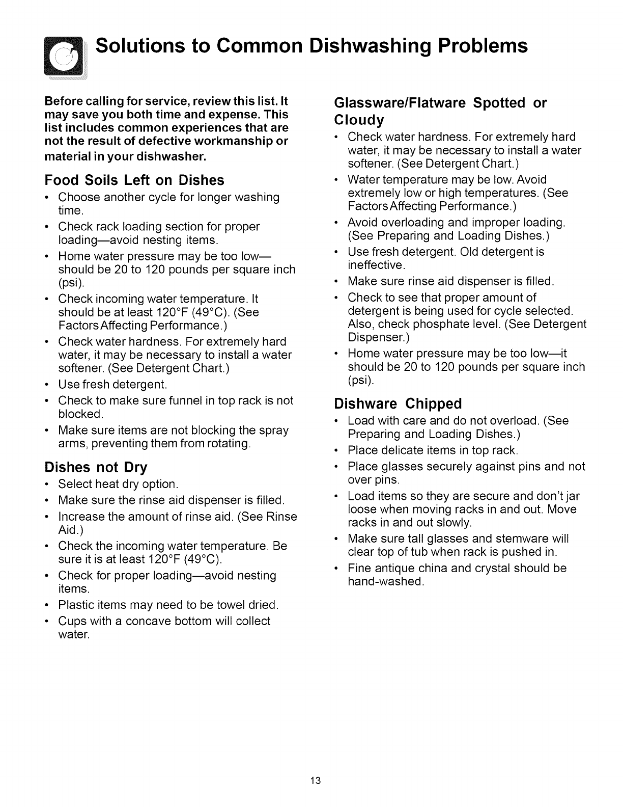 Dishwashing Problems...13-1s