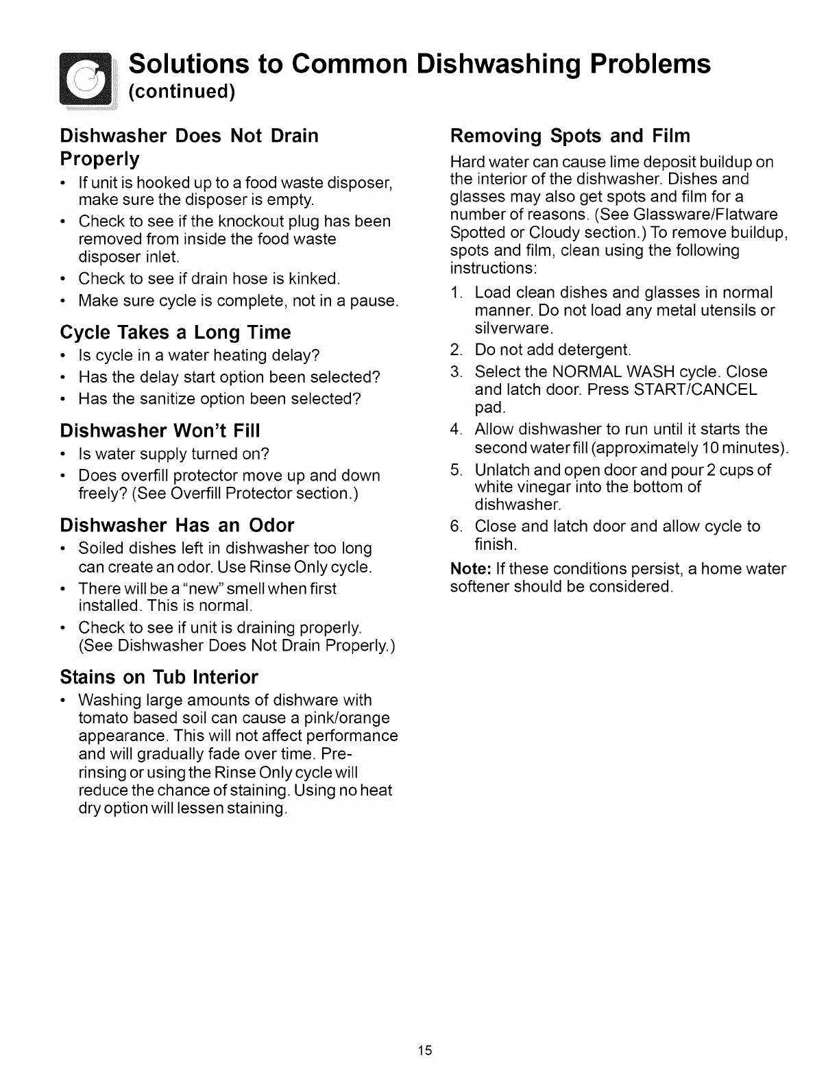 (See Dishwasher Does Not Drain Properly.)