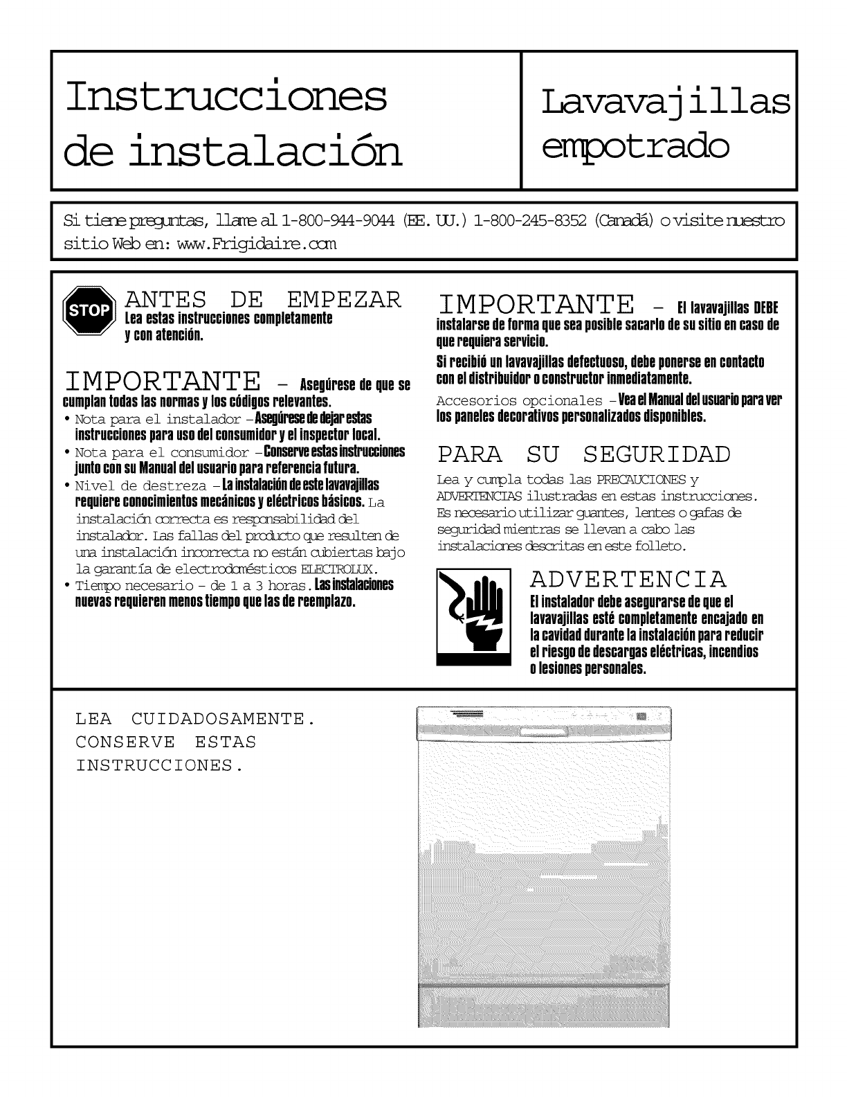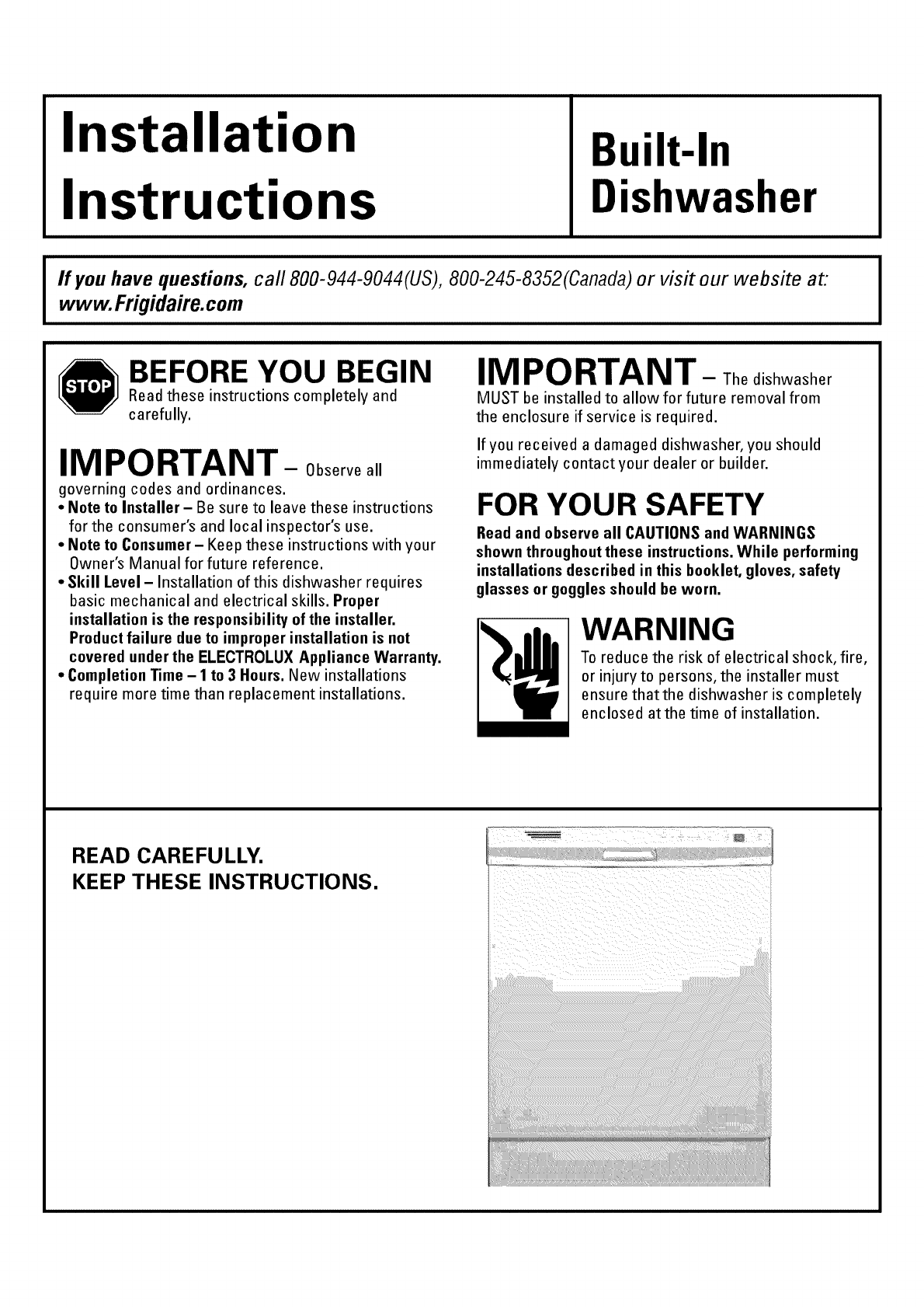 FRIGIDAIRE Dishwasher Manual L0904266 FRIGIDAIRE Dishwasher Owner's Manual, FRIGIDAIRE Dishwasher installation guides