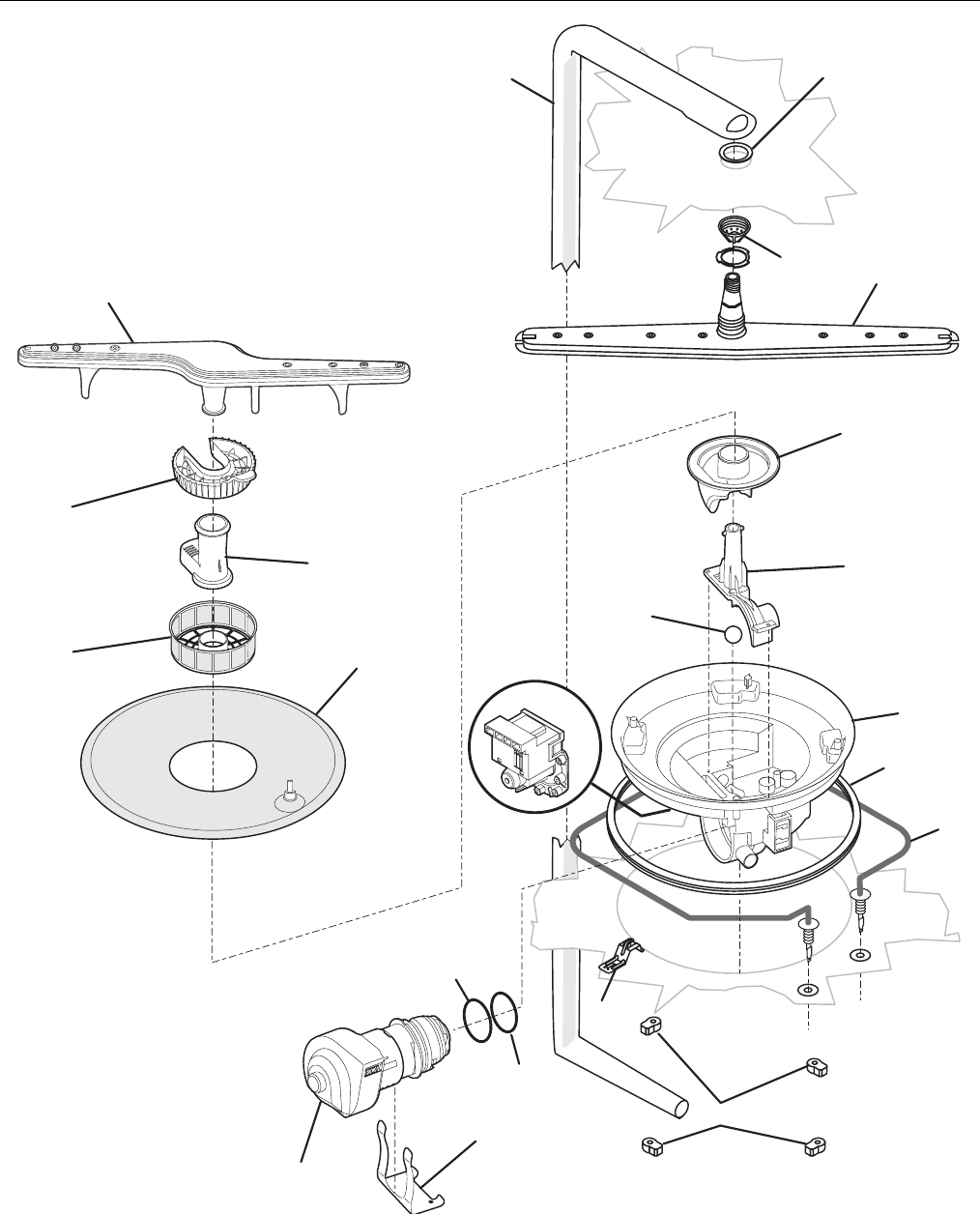 24 154568001 A B Spray arm, white, lower, w/heat shield