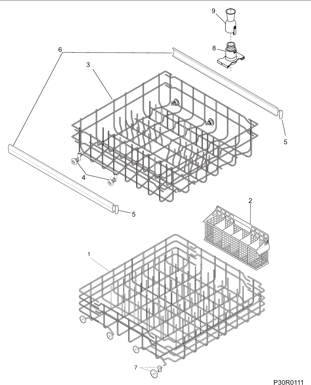 4 154522901 A B Wheel & bushing assy, upper rack, (8)