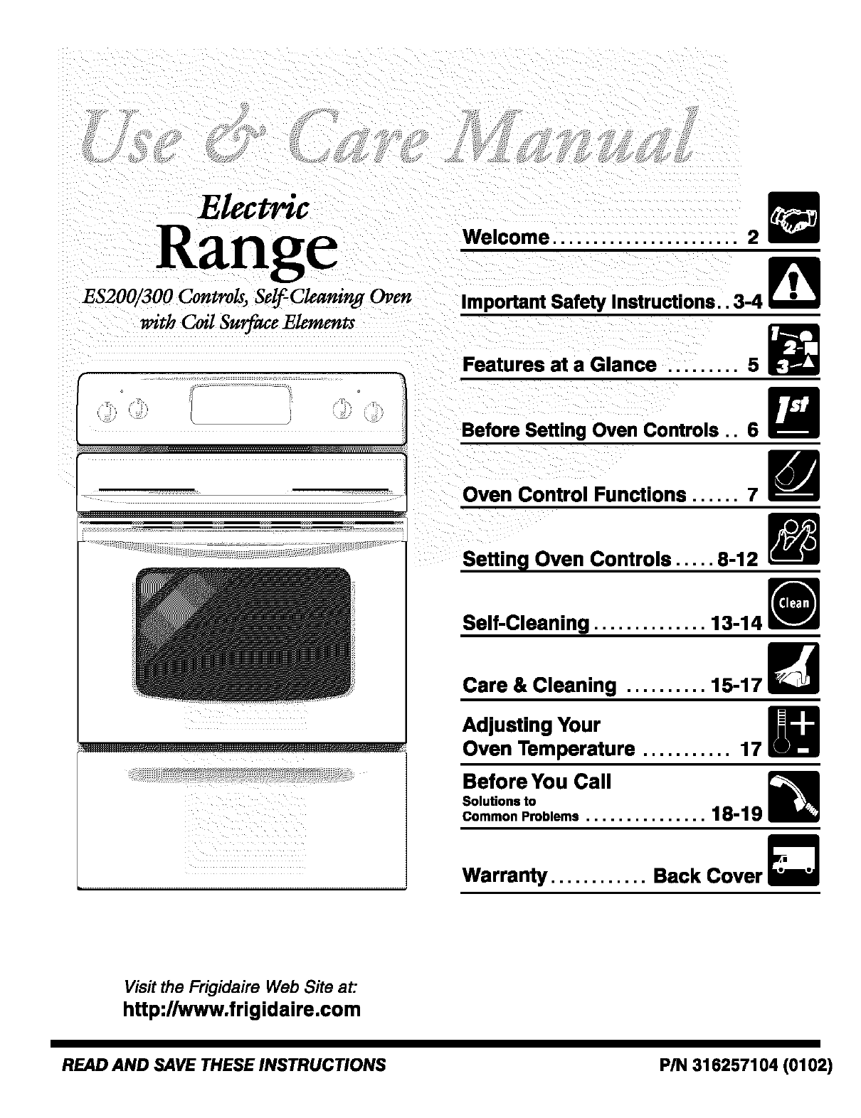 Frigidaire FEF352AWA User Manual ELECTRIC RANGE Manuals And Guides L0109113