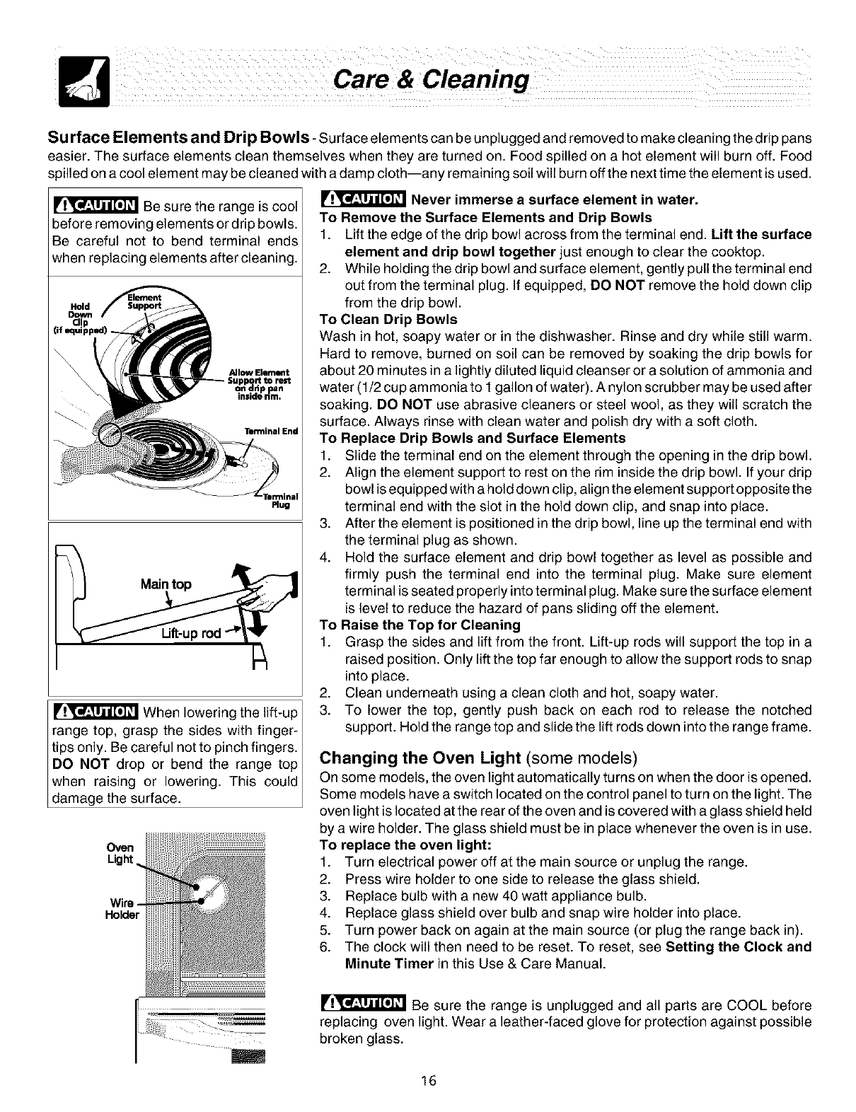 6. Replacement of light bulbs and/or fluorescent tubes (on models with these features).