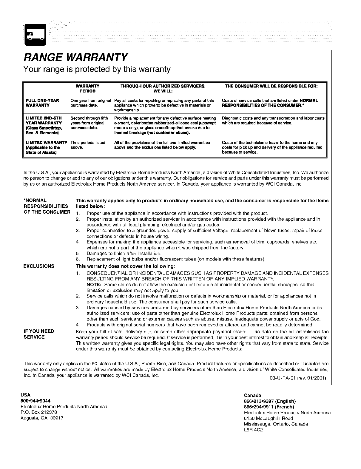 Inc. In Canada, your appliance is warranted by WCI Canada, Inc. 03-U-RA-01 (rev. 01/2001)