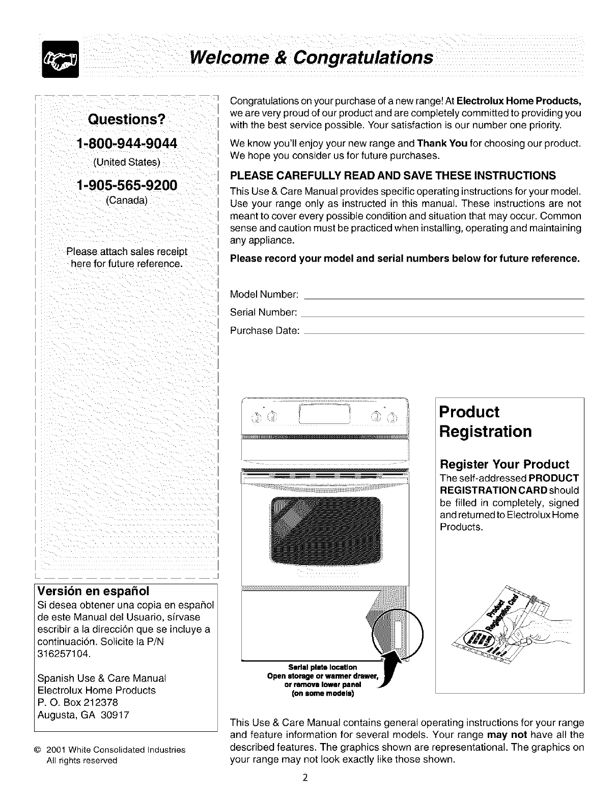Congratulations on your purchase of a new range! At Electrolux Home Products,