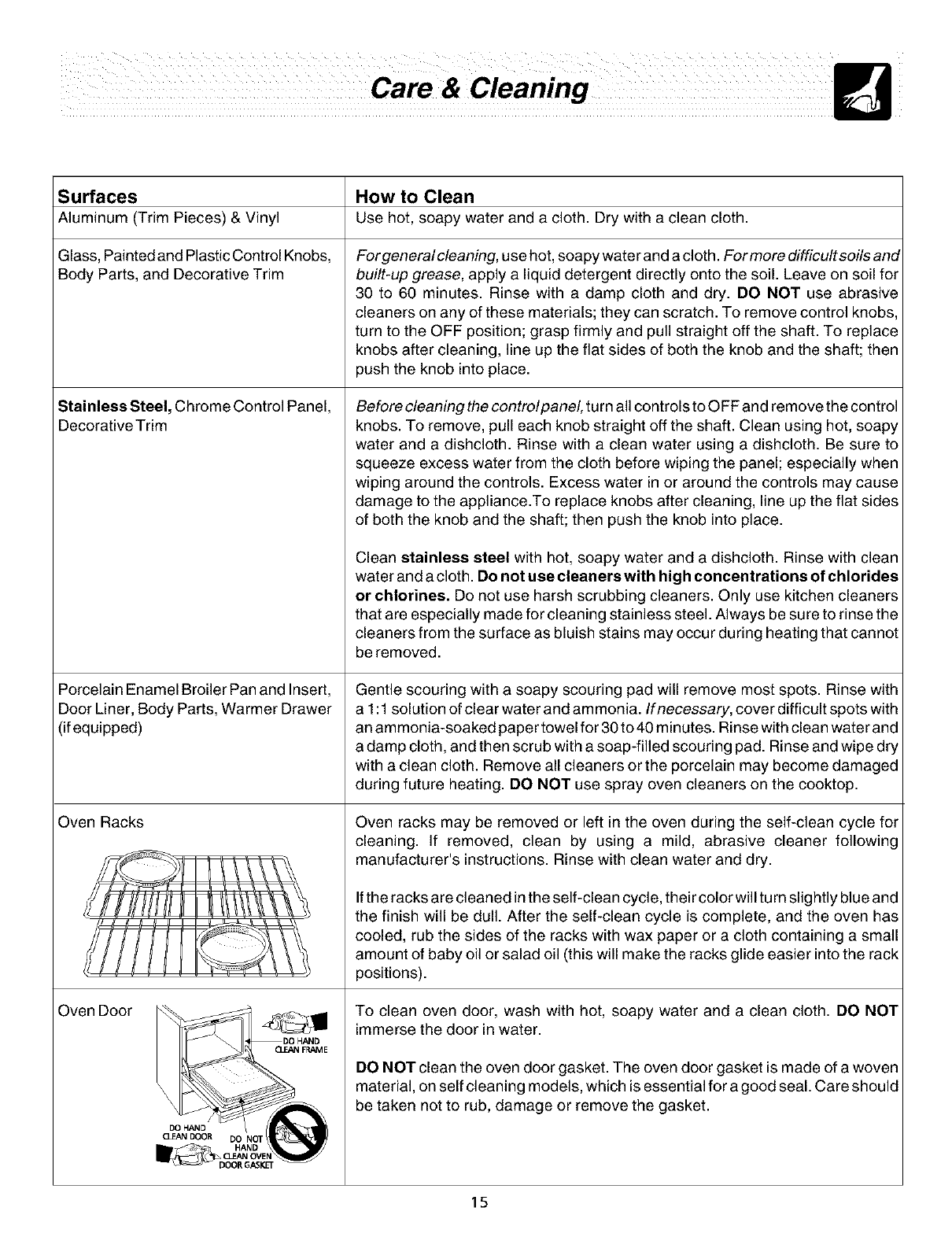 residue. Clean these areas before the self-cleaning cycle is started. Burned-on