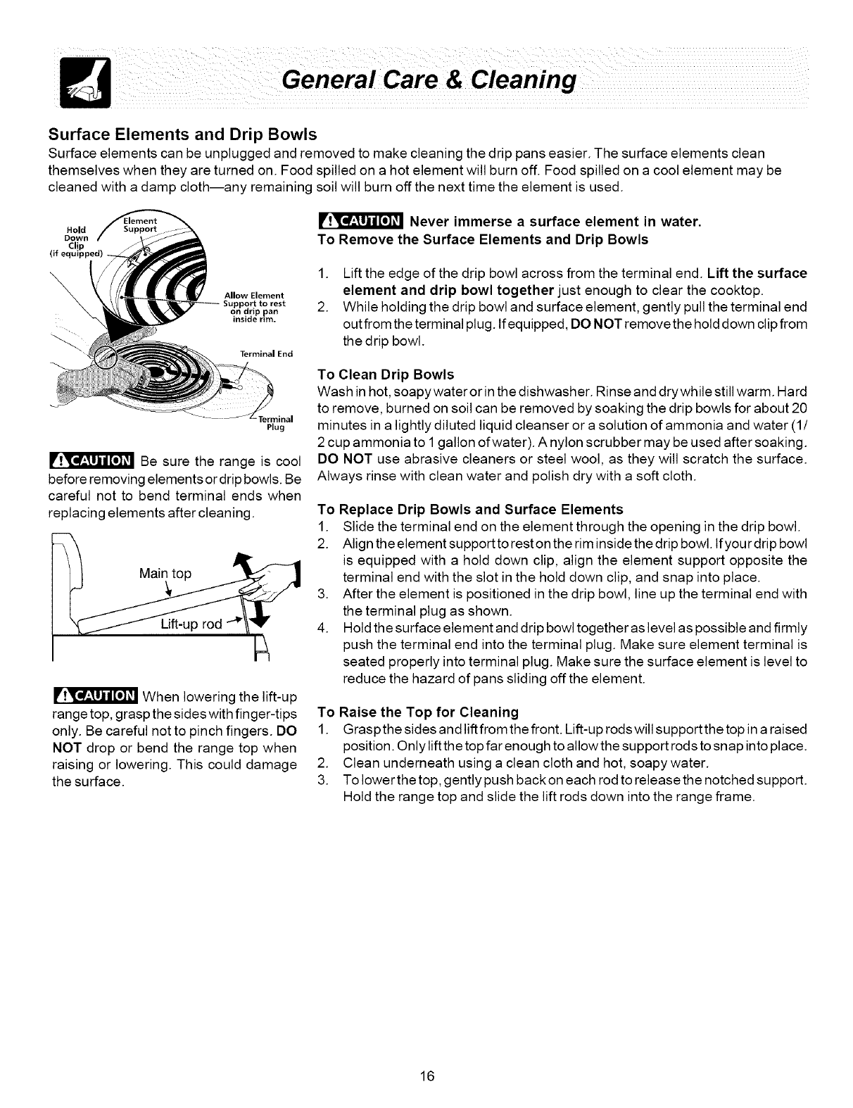size of the element. Replacement drip bowls may be
