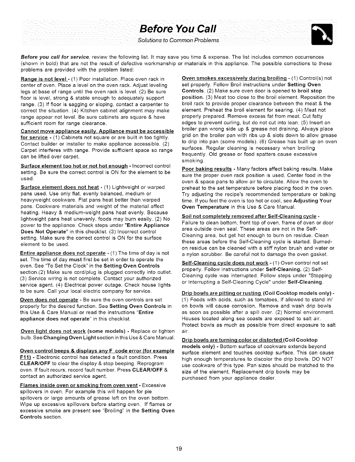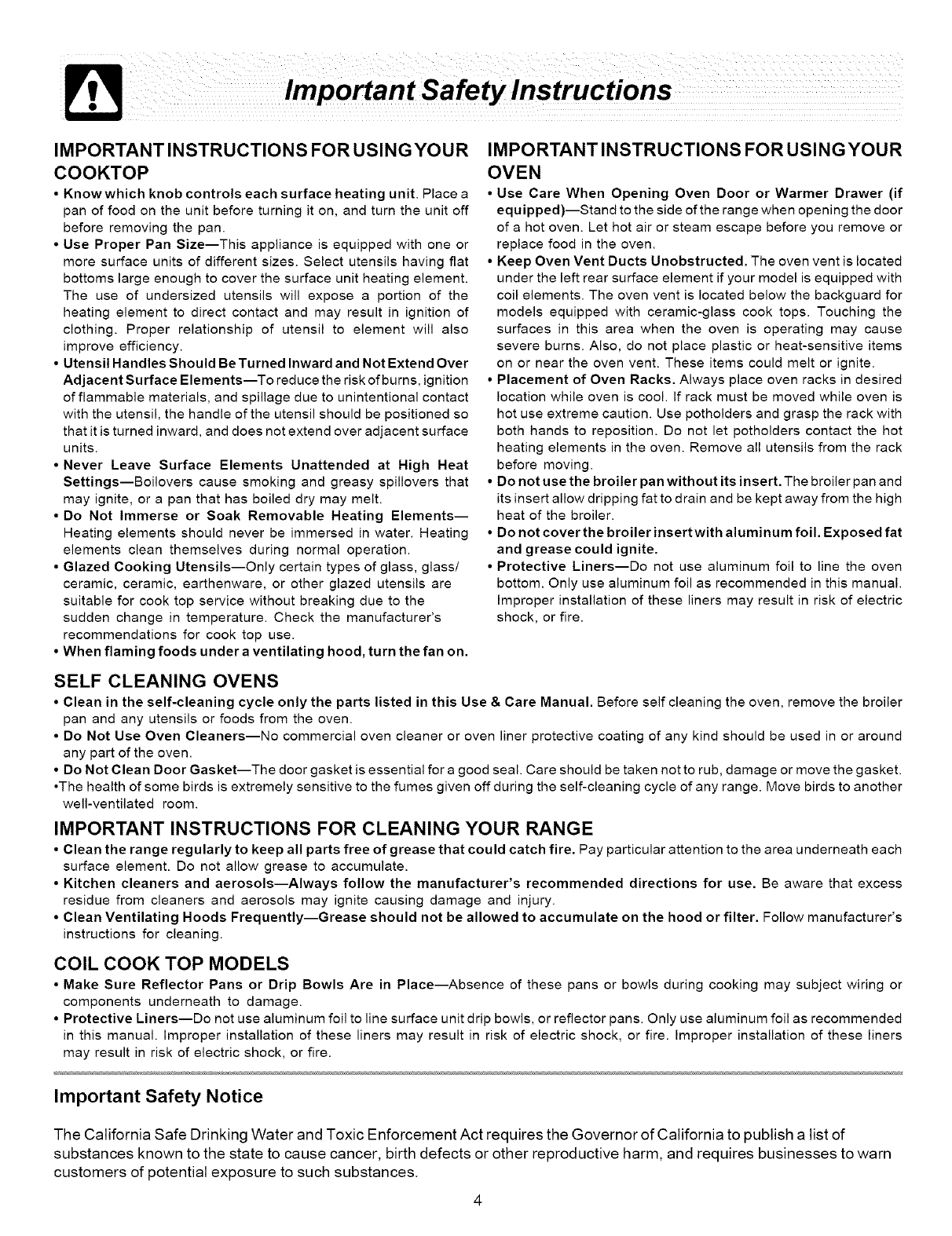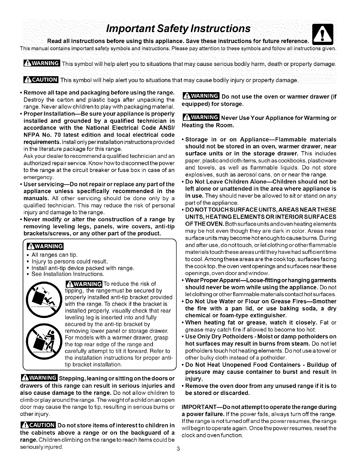 This Use & Care Manual contains general operating instructions for your range and