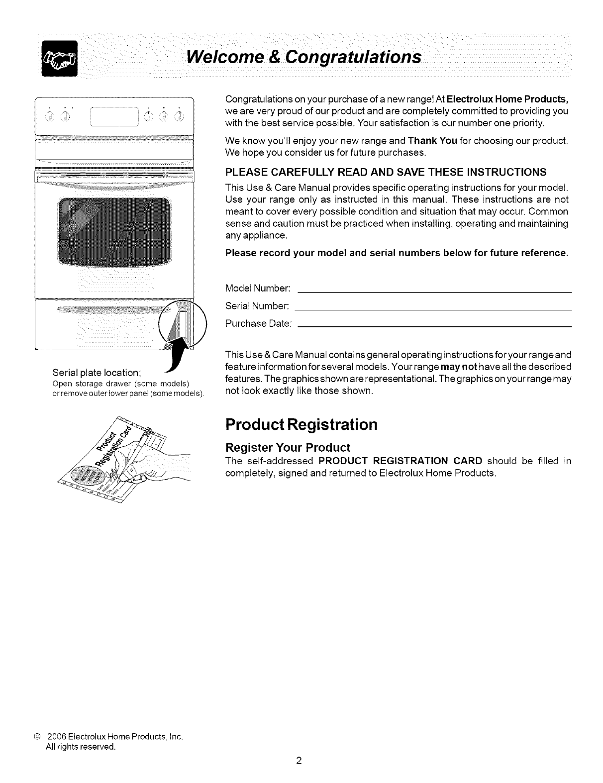 Congratulations on your purchase of a new range! At Electrolux Home Products,