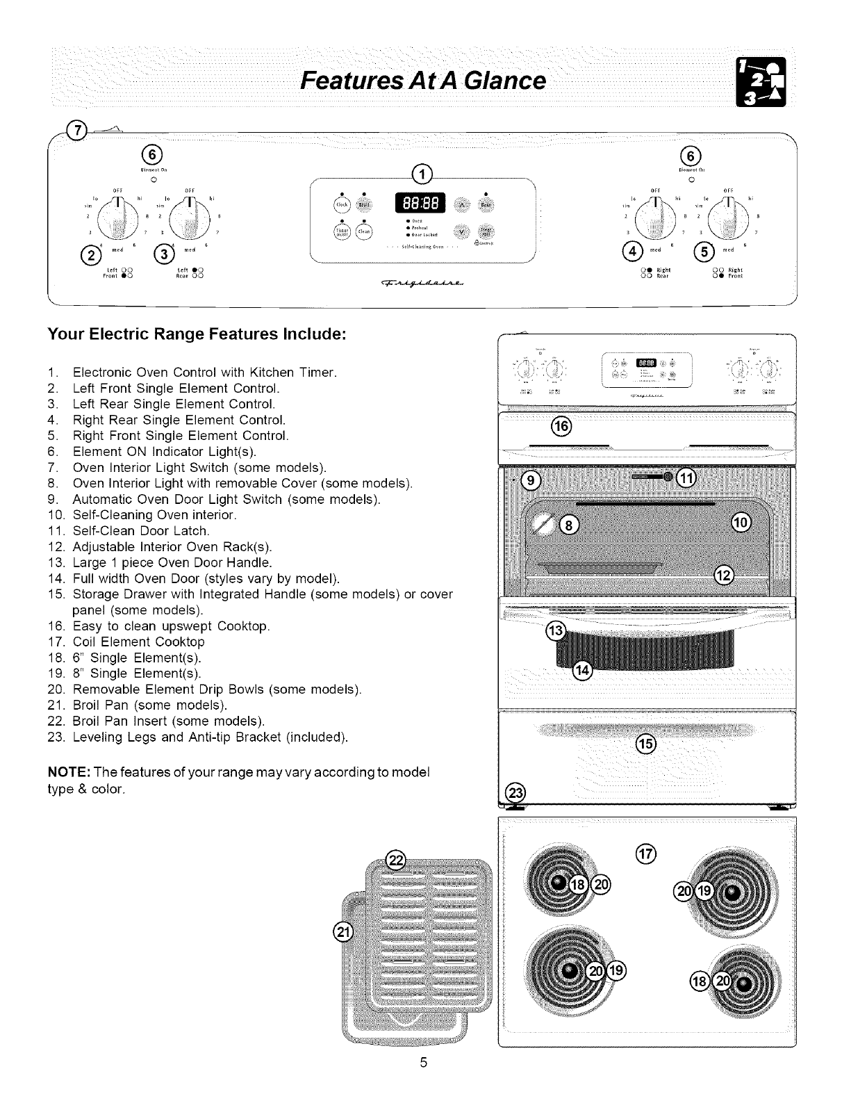 feature information for several models. Your range may not have all the described