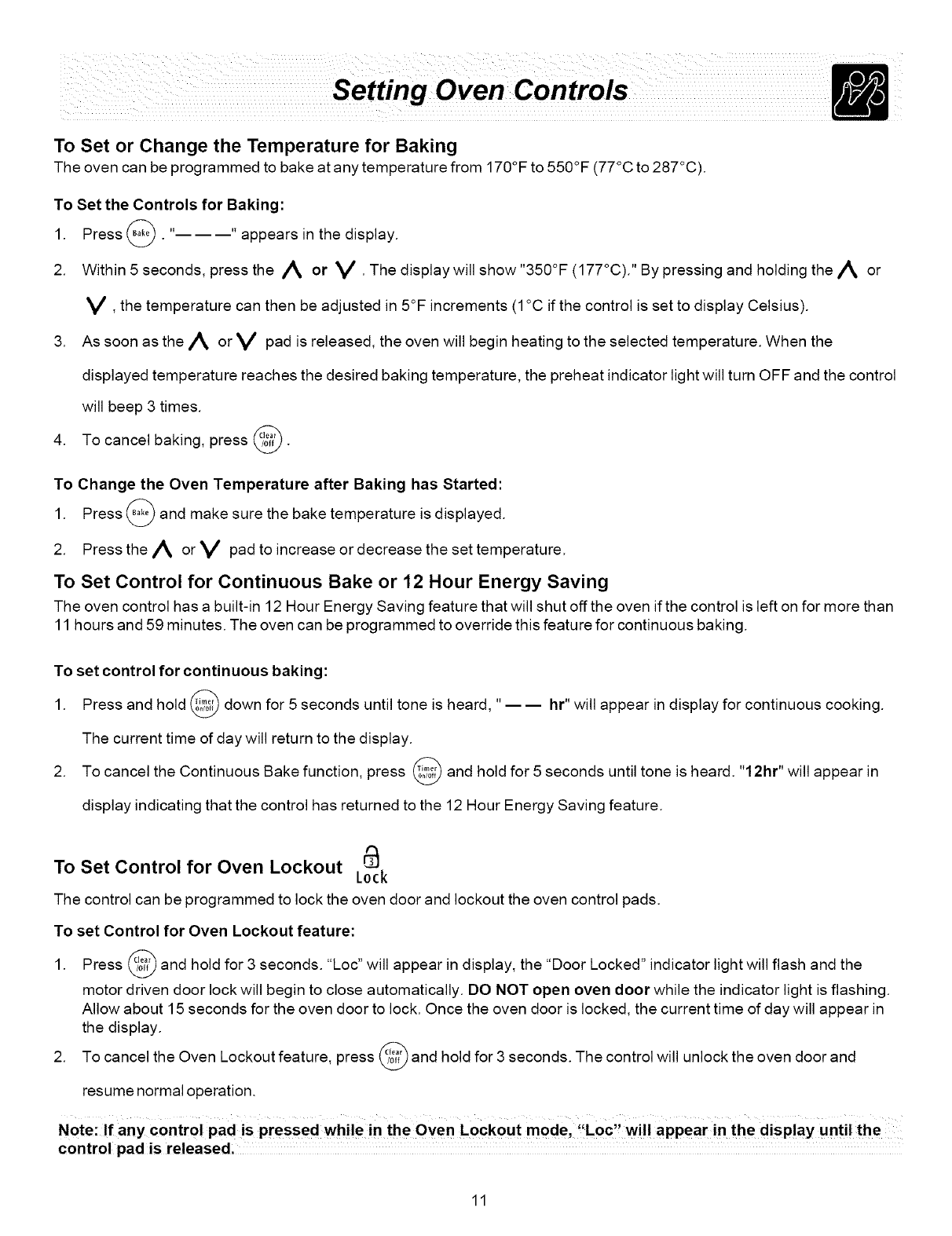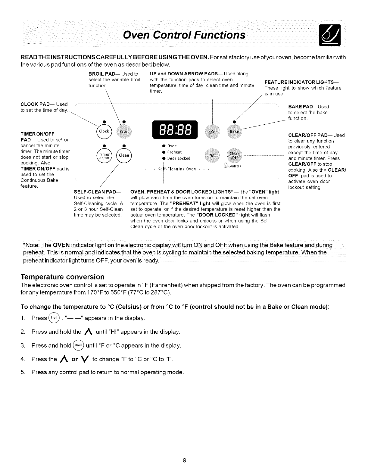 ..........Oven Control Functions ................ 9