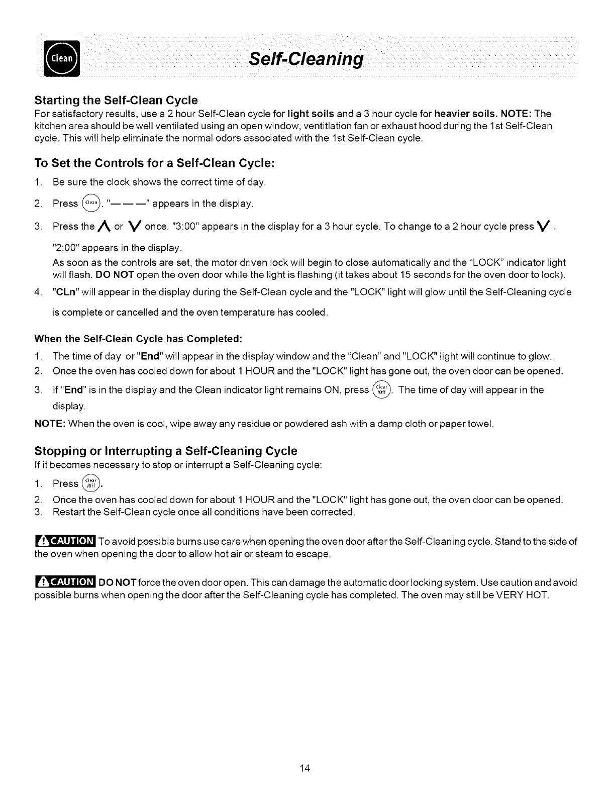 or interrupting a Self-Cleaning Cycle" under Self-Cleaning