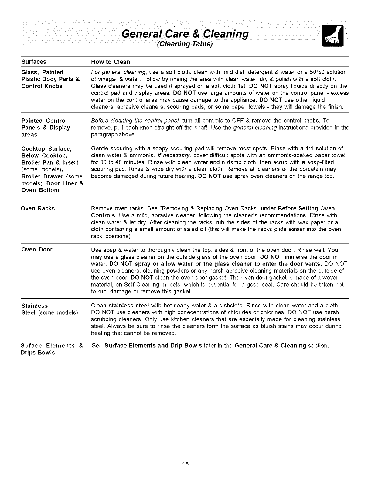 General Care &Cleaning ....... 15-18