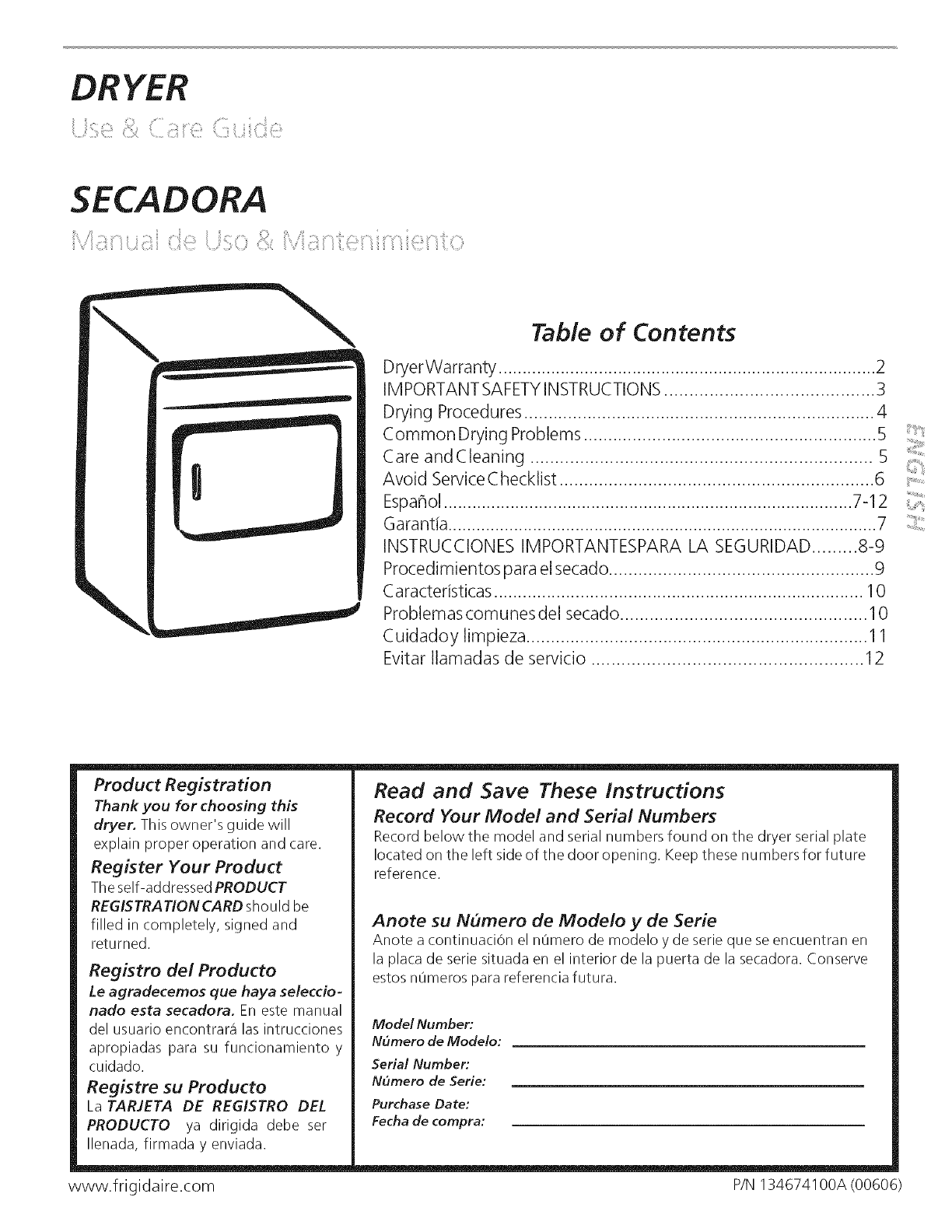 Frigidaire FEQ1442FE0 User Manual DRYER Manuals And Guides L0801505