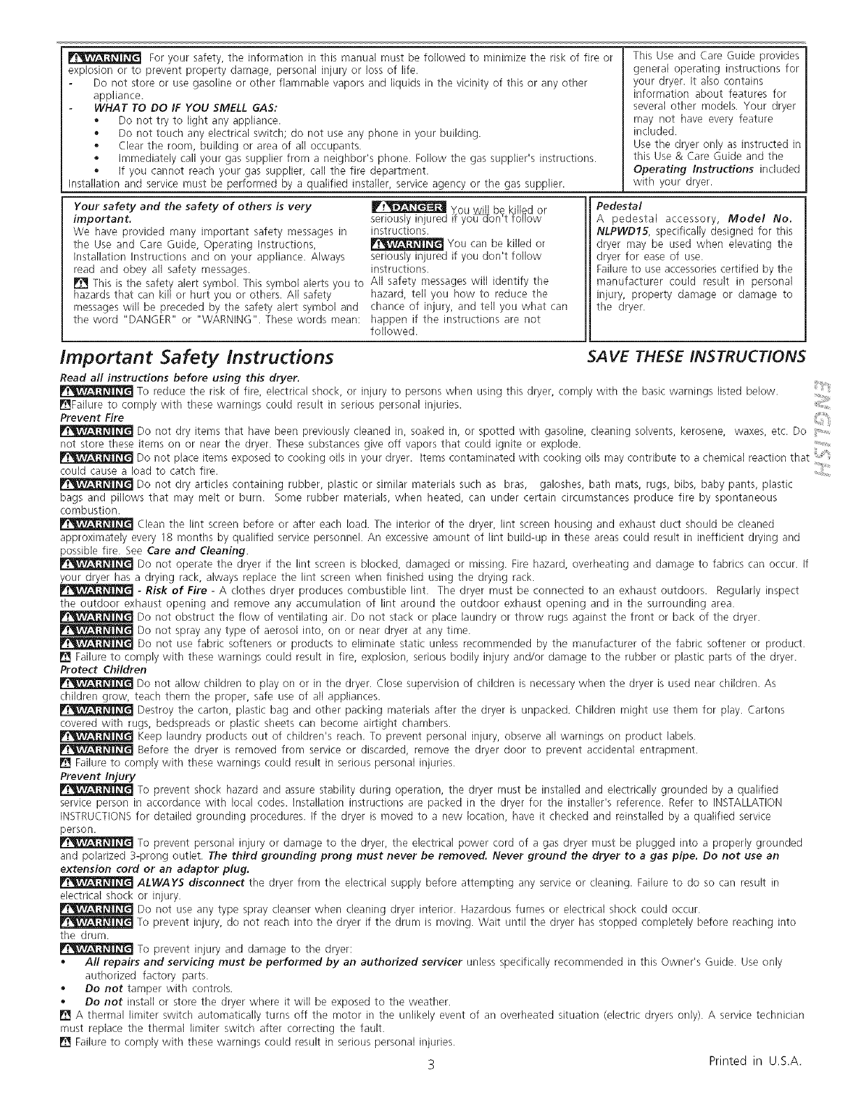 IMPORTANT SAFETYINSTRUCTIONS .......................................... 3