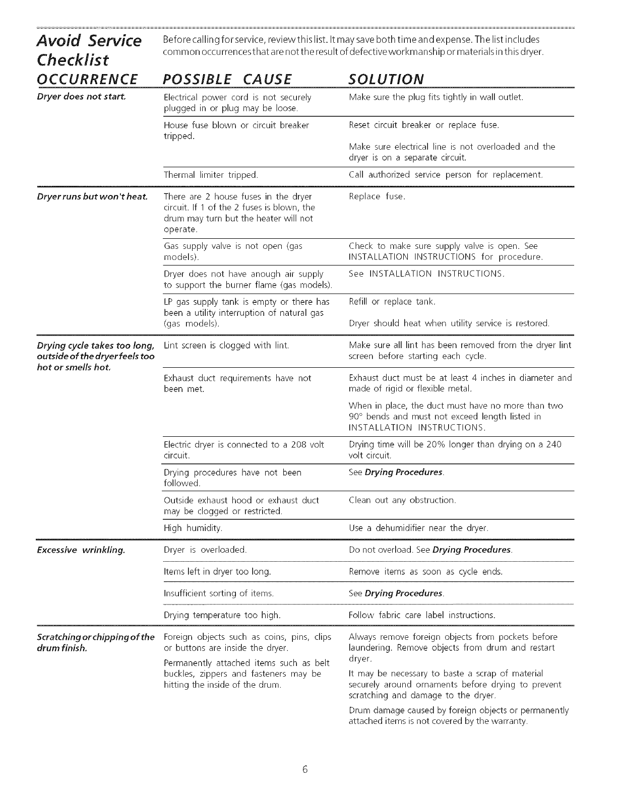 Avoid Service Before calling for service, reviewthis list. It may saveboth time and exper_se.The list includes