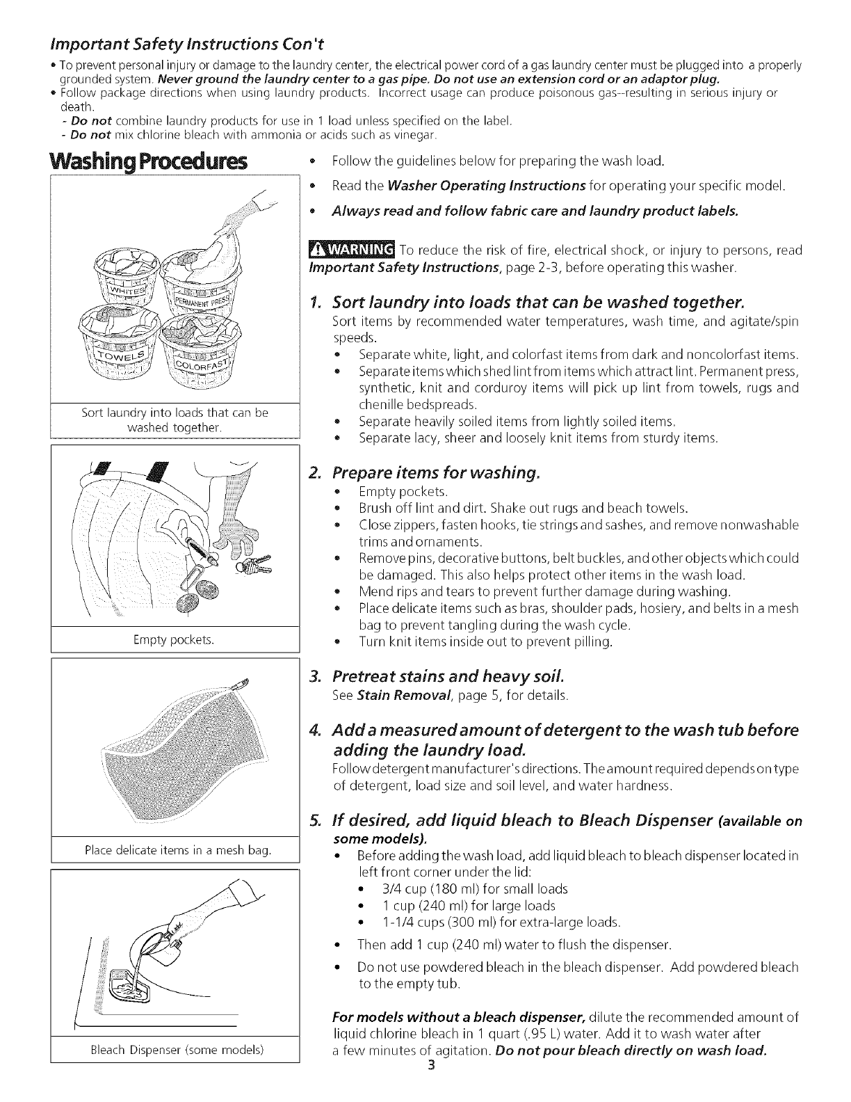 Washing Procedures ..................................................... 3-4