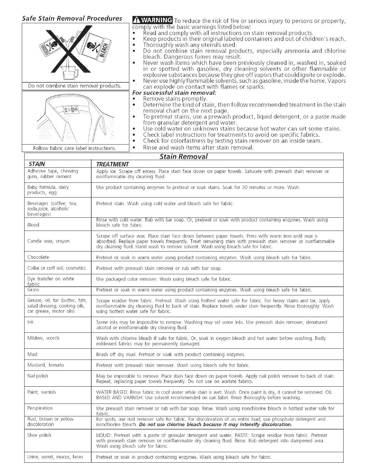 Stain Removal .................................................................. 5