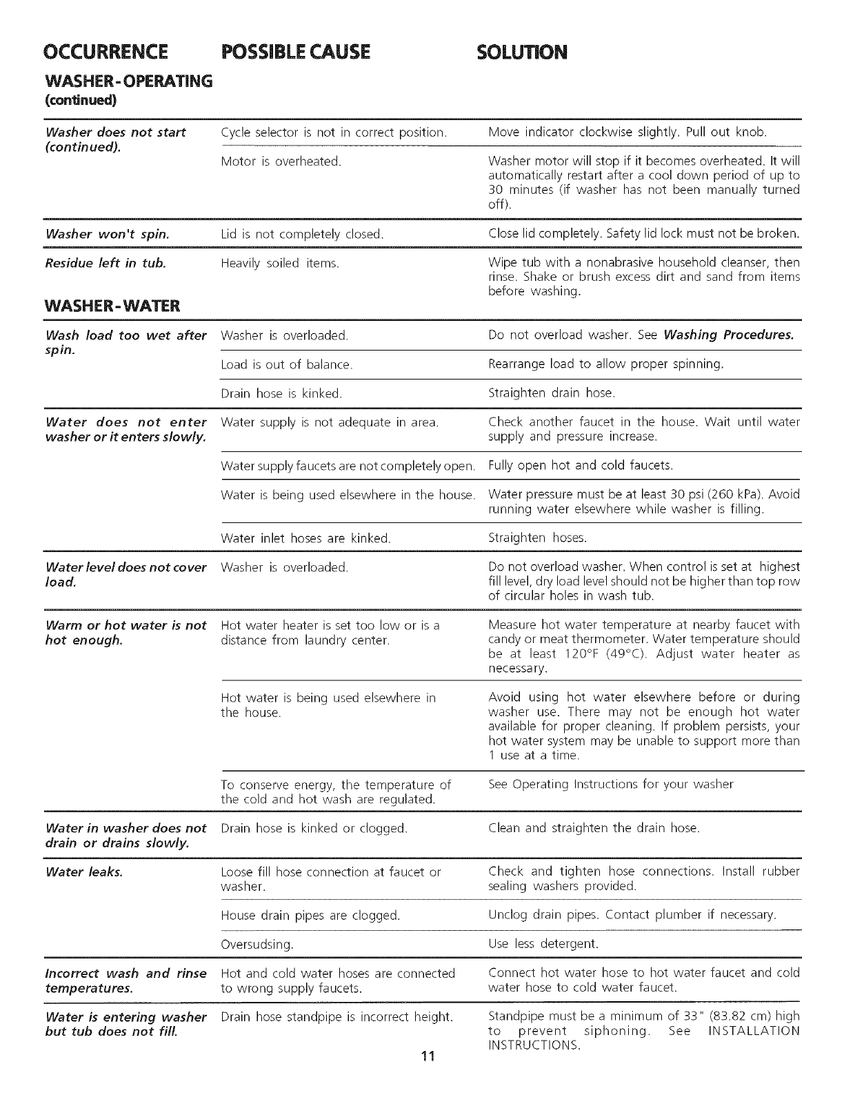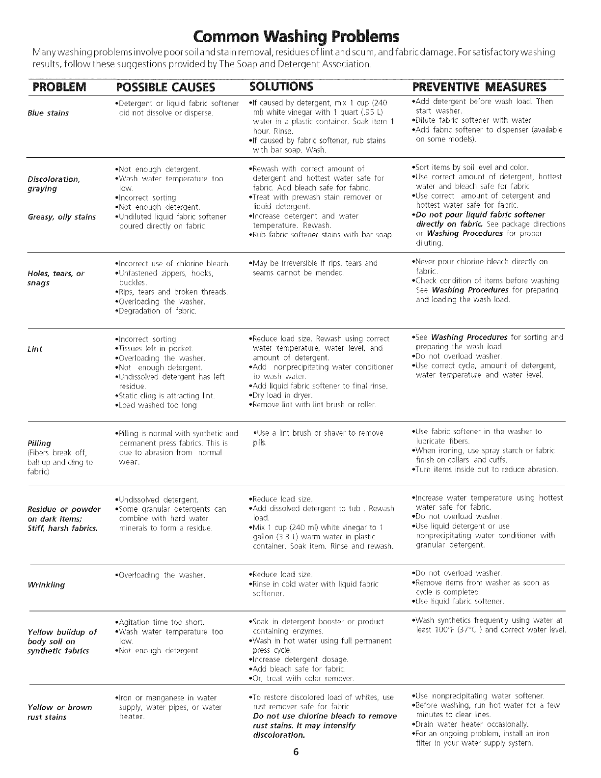Common Washing Problems .......................................... 6